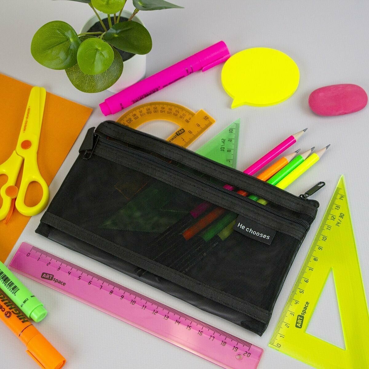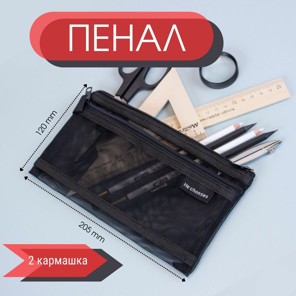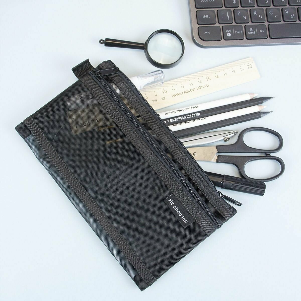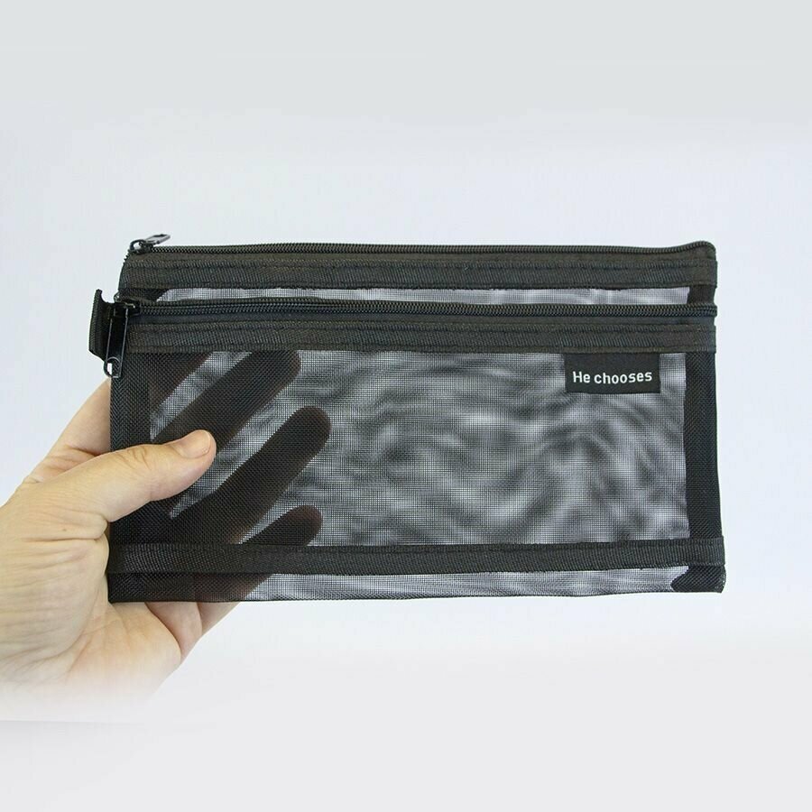 Прозрачный школьный пенал косметичка с двумя отделениями He Chooses, сетчатый из нейлона, Черный интересное: