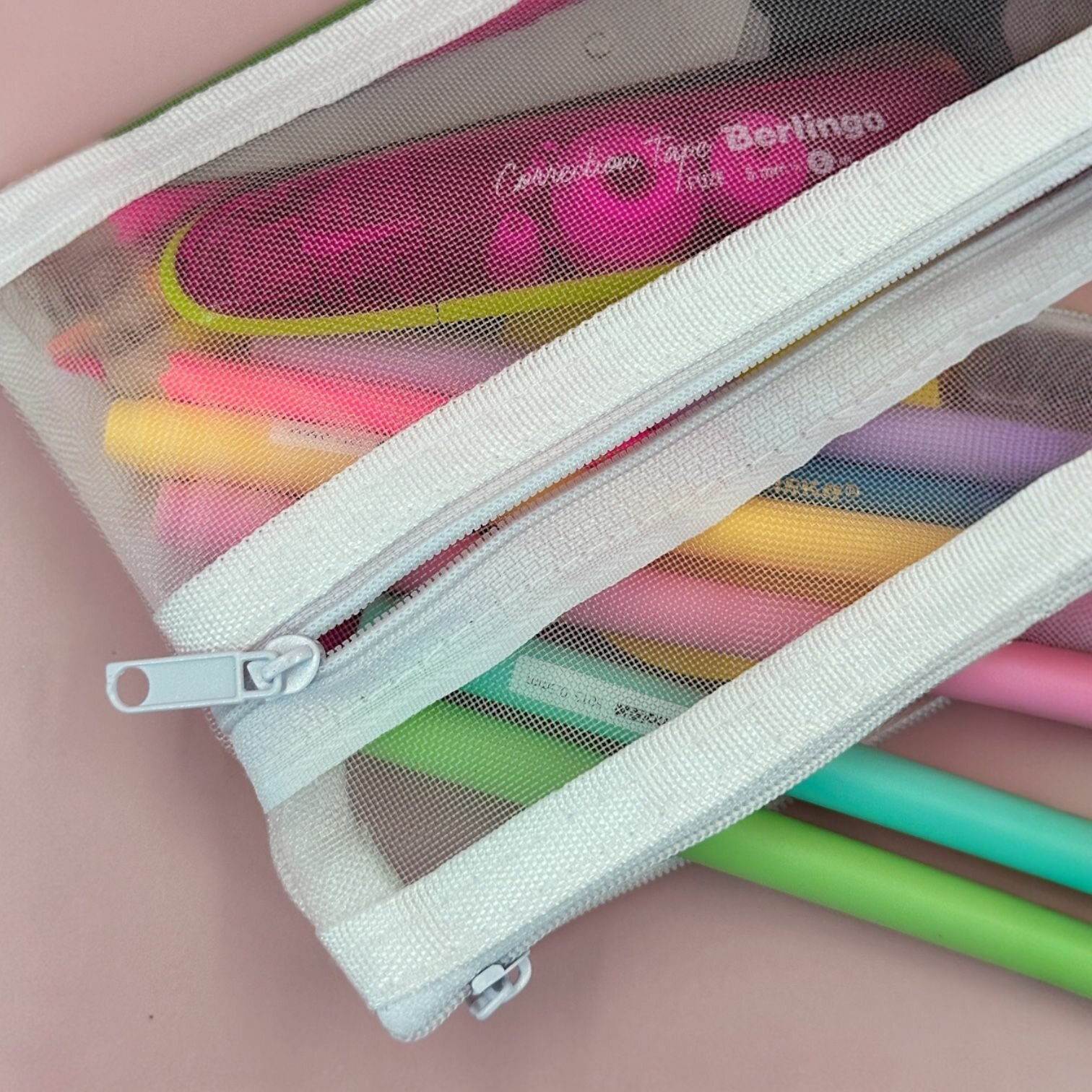 Купить Прозрачный школьный пенал косметичка с двумя отделениями He Chooses, сетчатый из нейлона - Белый