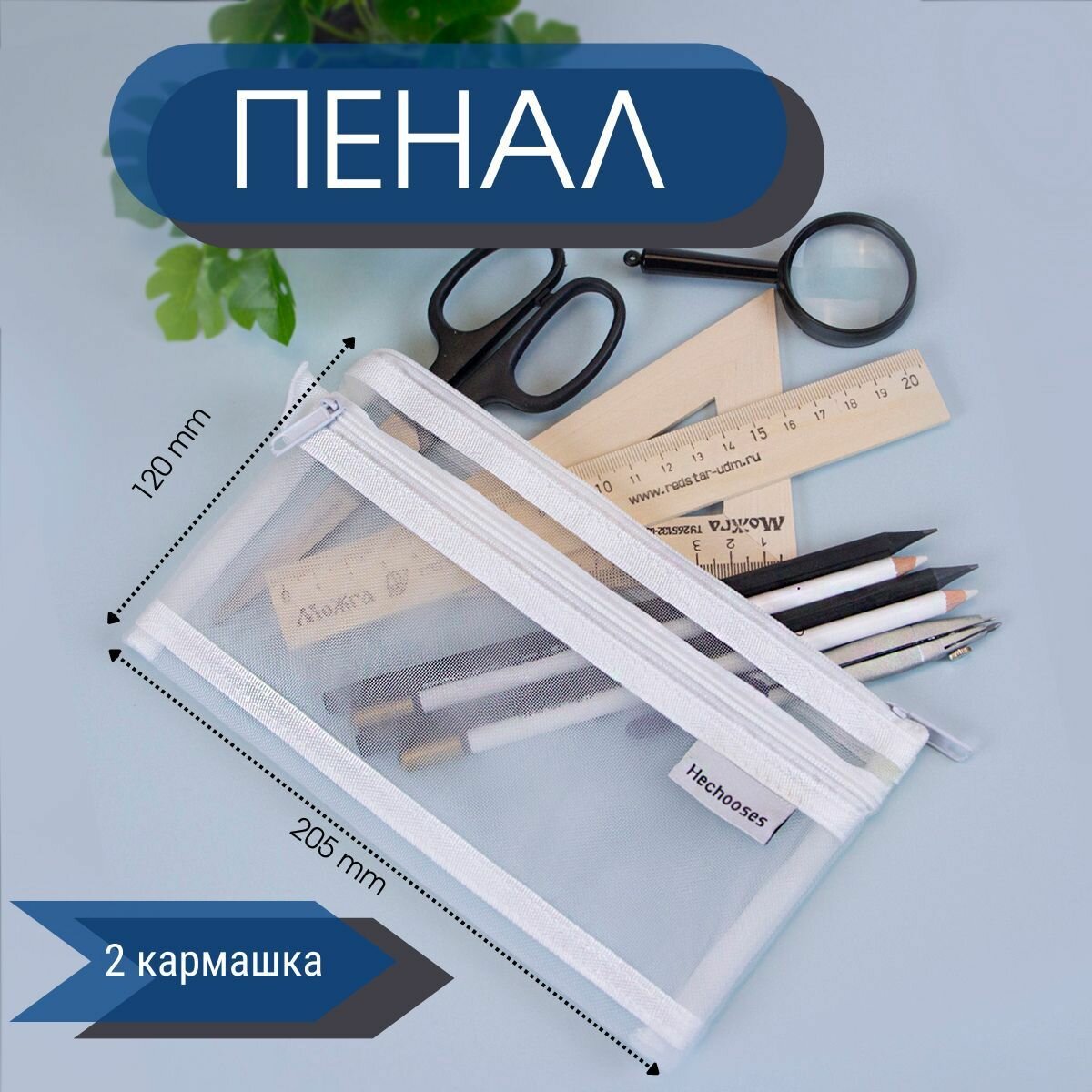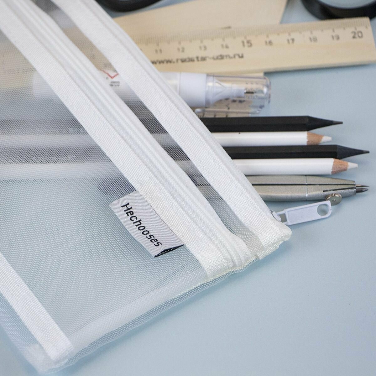 Прозрачный школьный пенал косметичка с двумя отделениями He Chooses, сетчатый из нейлона - Белый интересное: