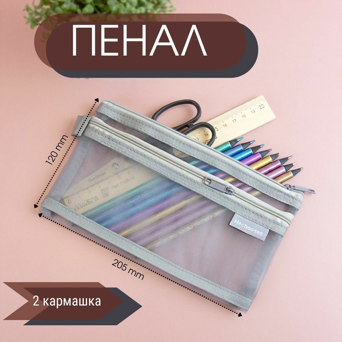 Купить Прозрачный школьный пенал косметичка с двумя отделениями He Chooses, сетчатый из нейлона - Серый