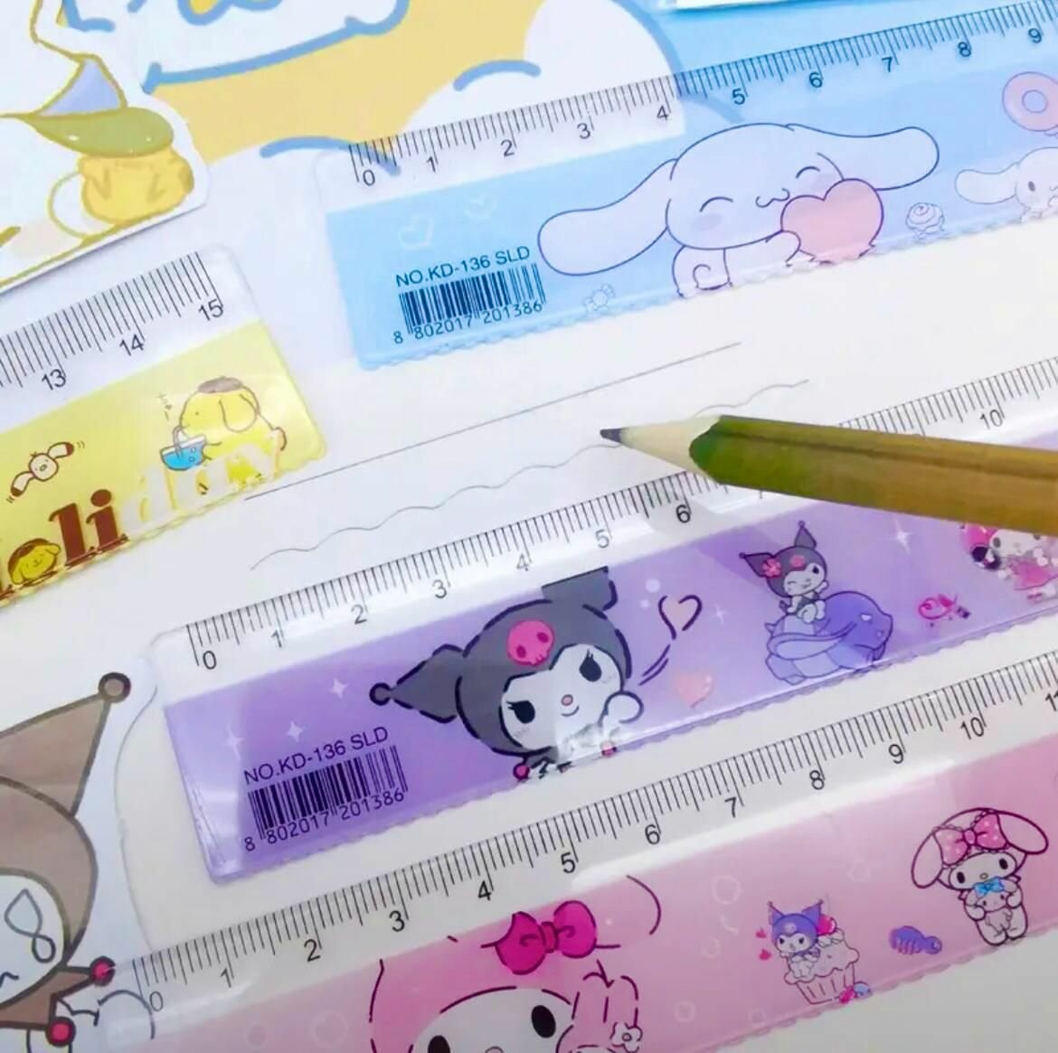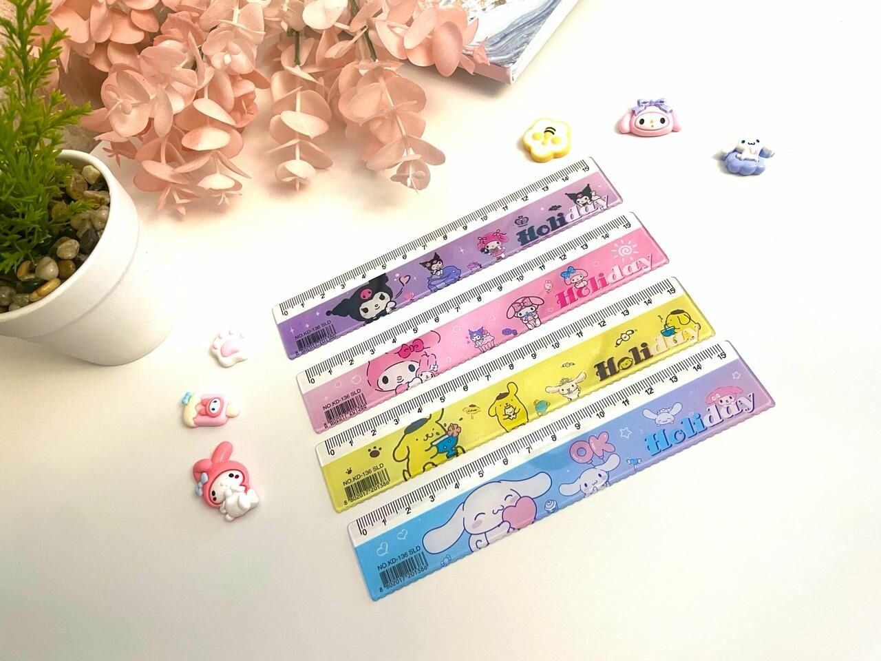 Купить Набор линеек 4 штуки My Melody Kuromi Cinnamoroll Pompurin друзья Hello Kitty