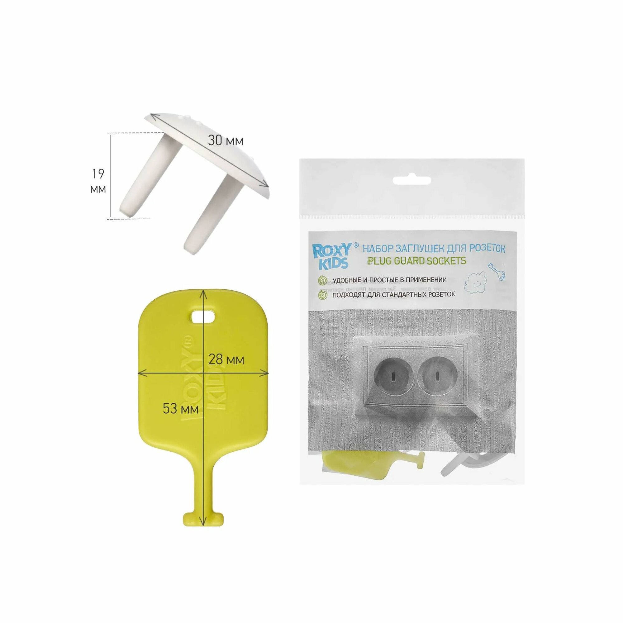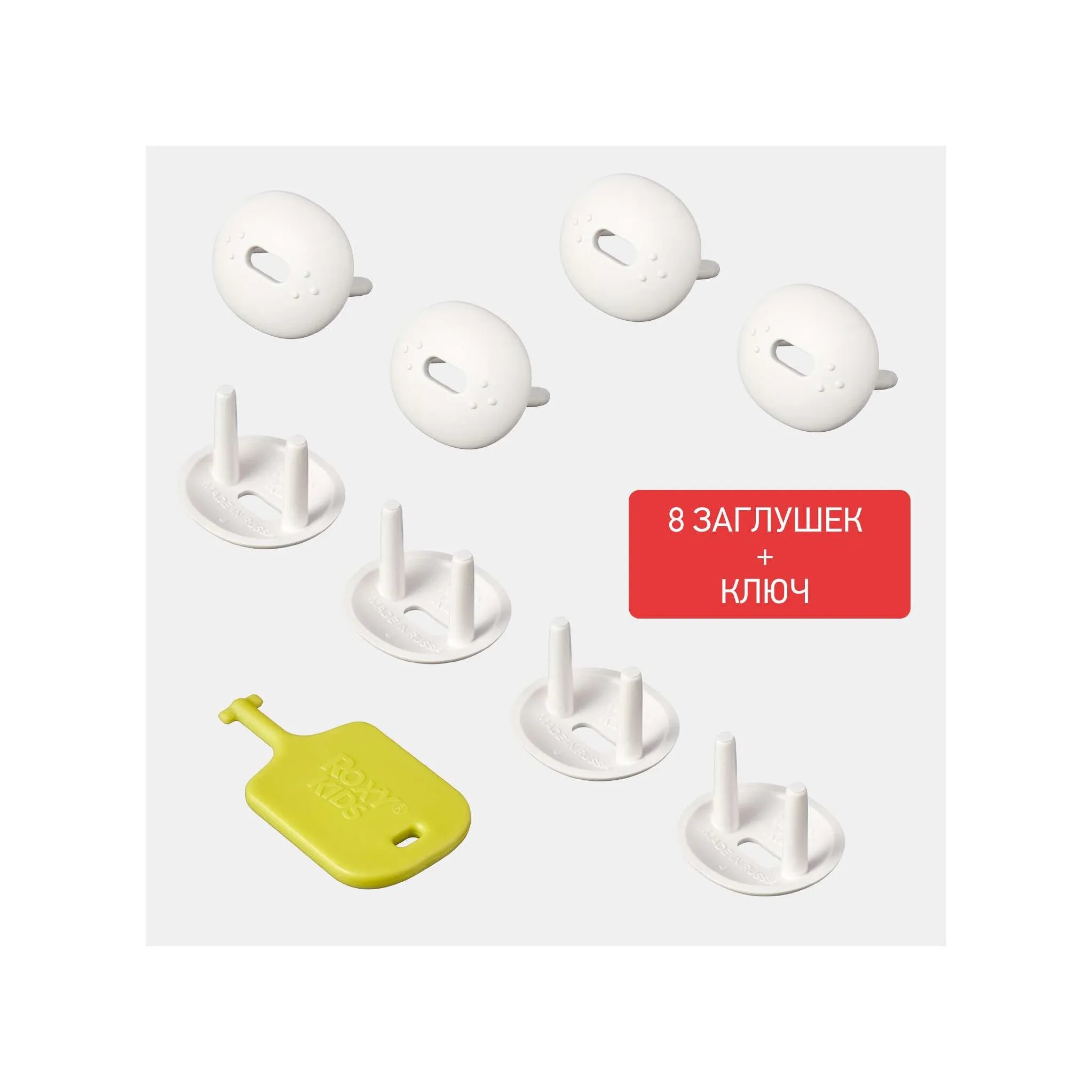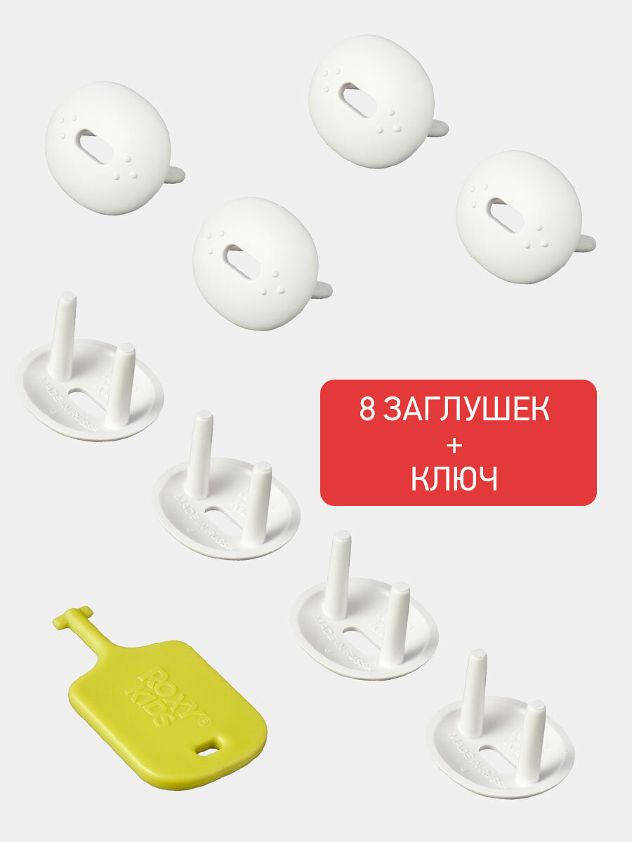 Набор заглушек для розеток Roxy-Kids, пластик, белый, 8шт