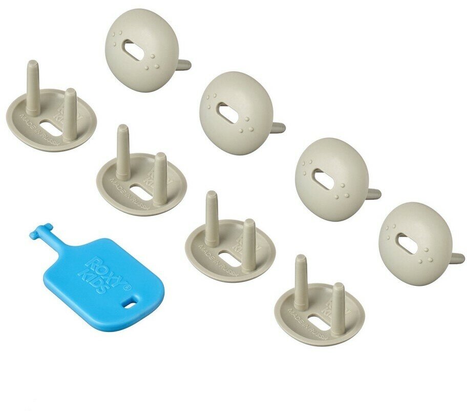 Набор заглушек для розеток Roxy-Kids, пластик, графит, 8шт