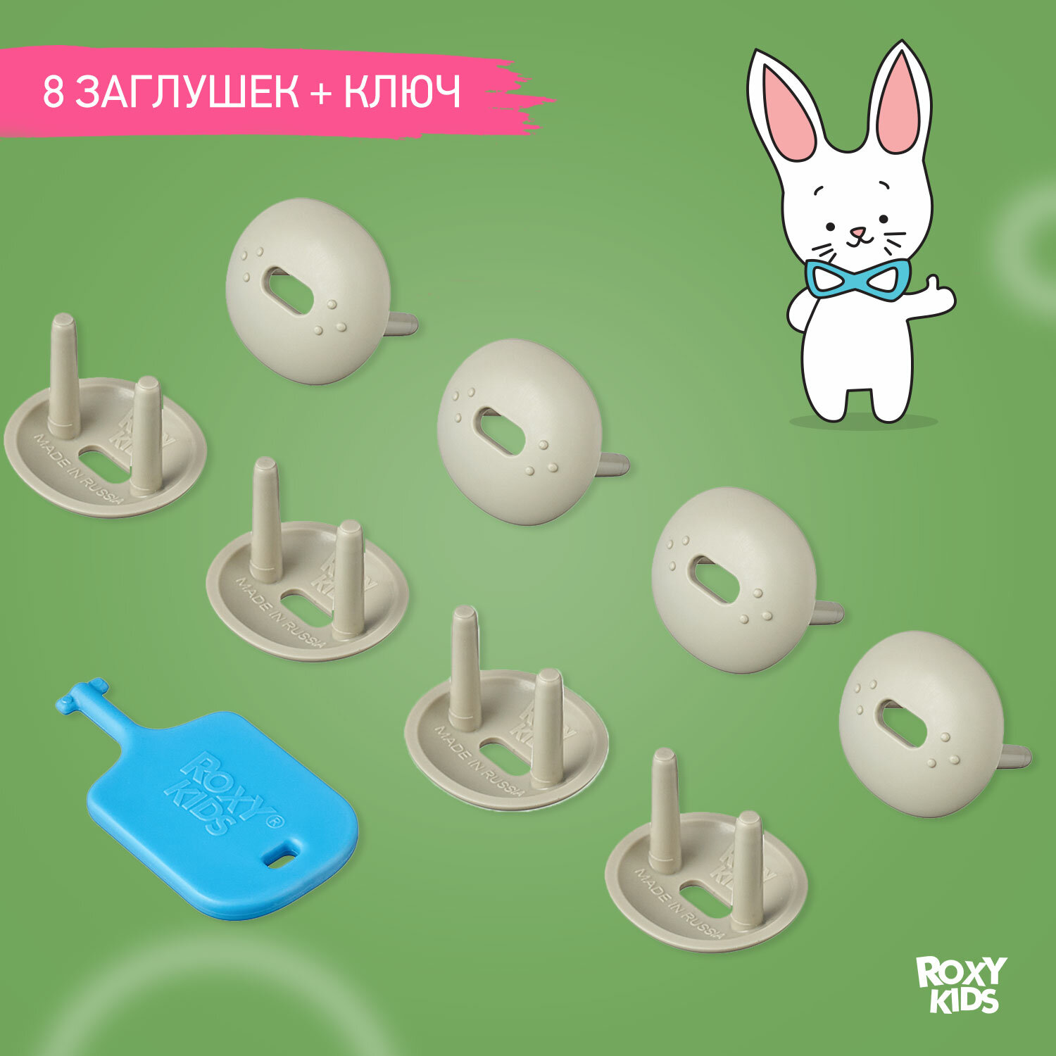 Набор заглушек для розеток Roxy-Kids, пластик, белый, 8шт