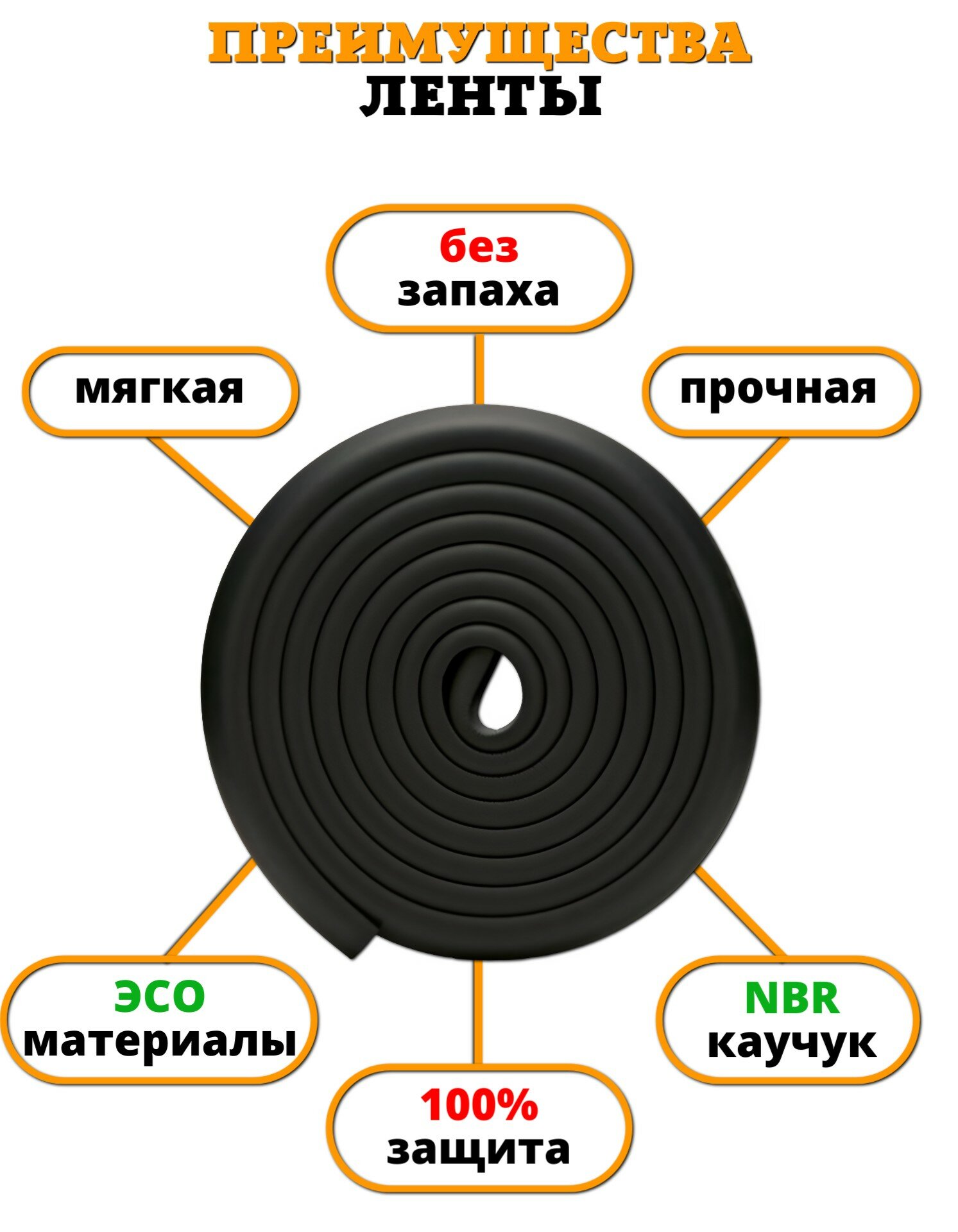 Защитная лента на углы Beideli 4 метра черный. Мягкая накладка на края мебели для детей от ударов интересное: