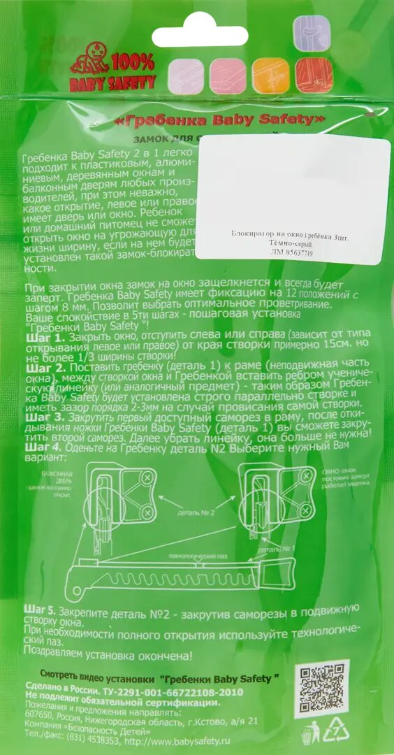 100 Baby Safety Baby Safety Ограничитель, замок на окно от детей 3шт. серые 4670006471294 интересное:
