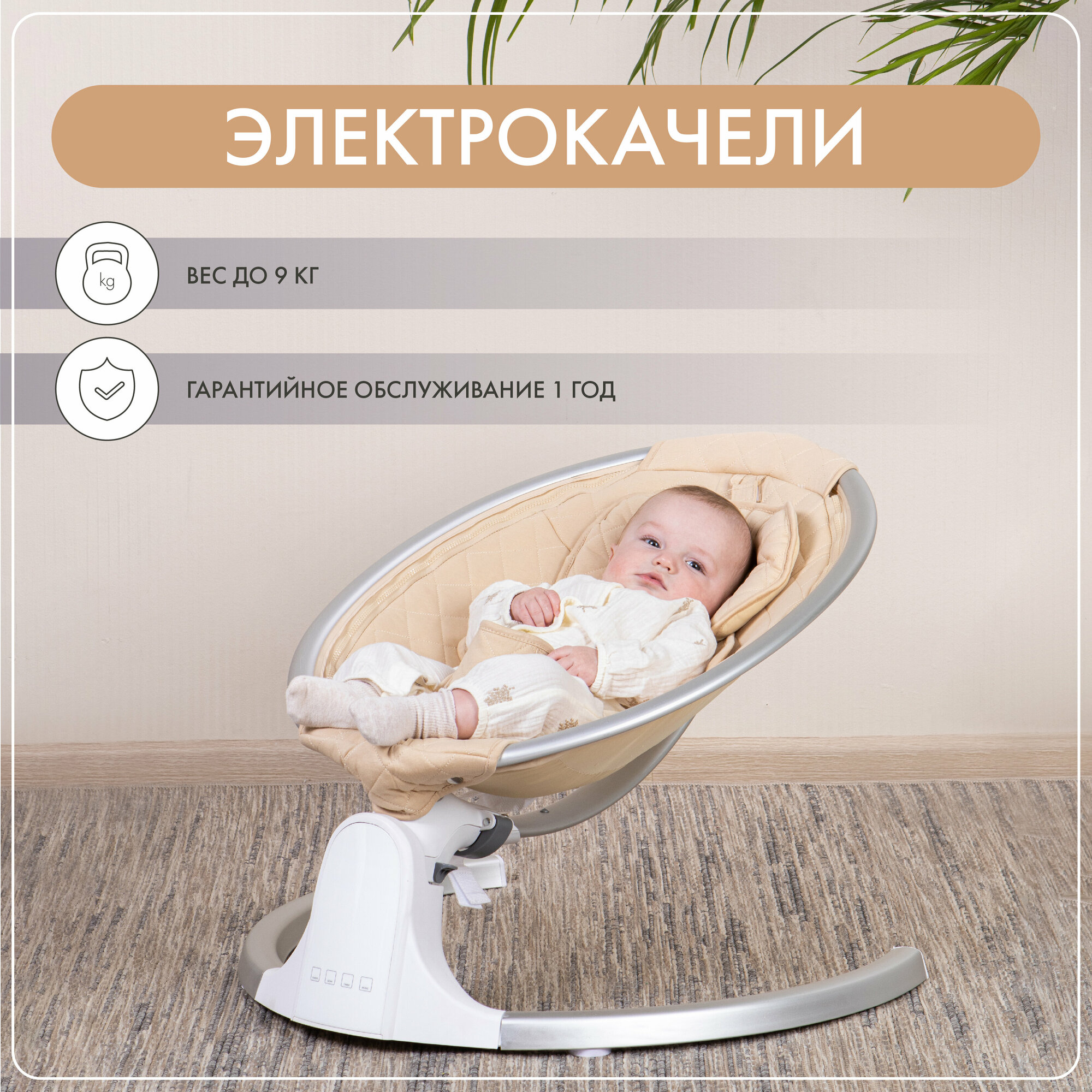 Купить Музыкальные электрокачели Кресло Шезлонг для новорожденных бежевый