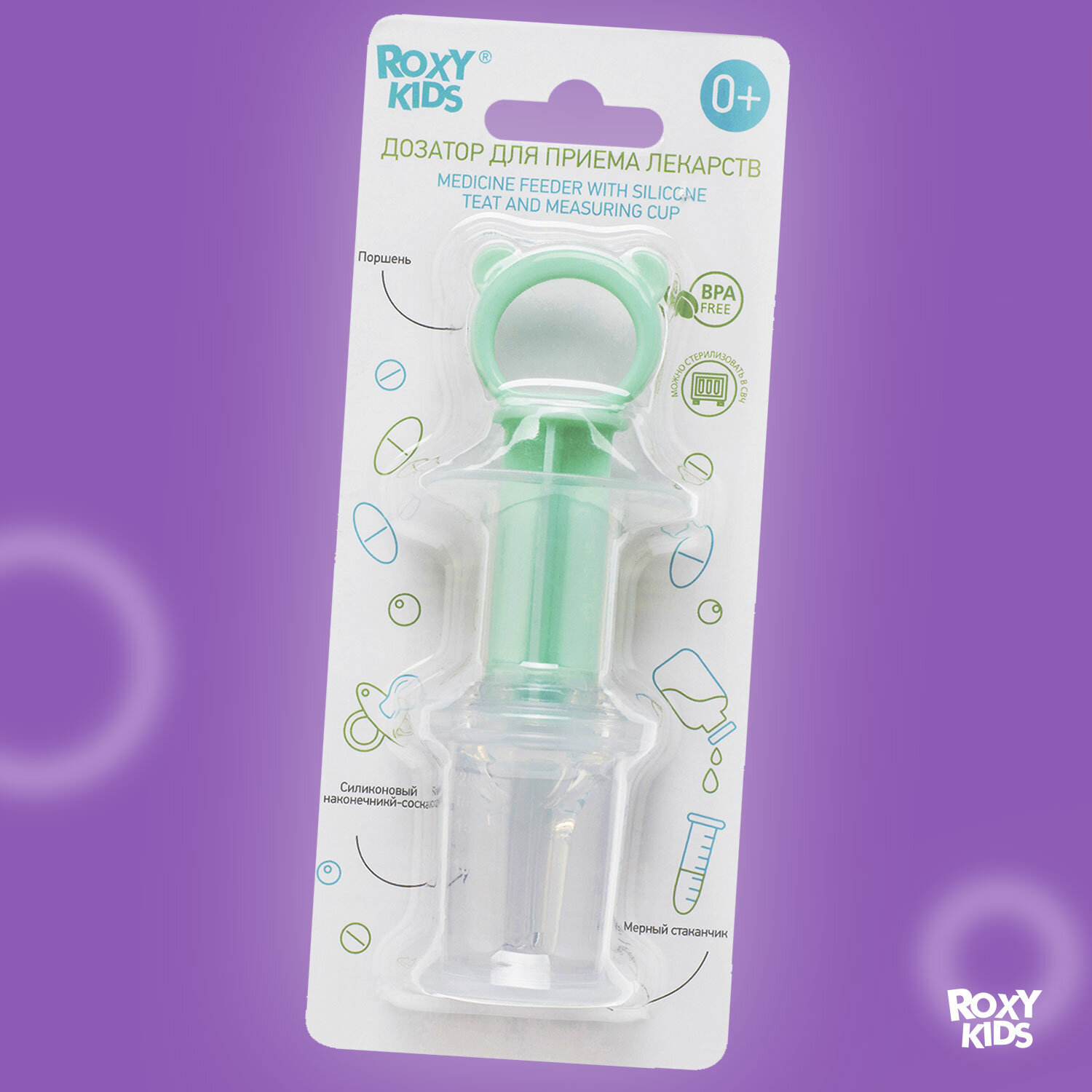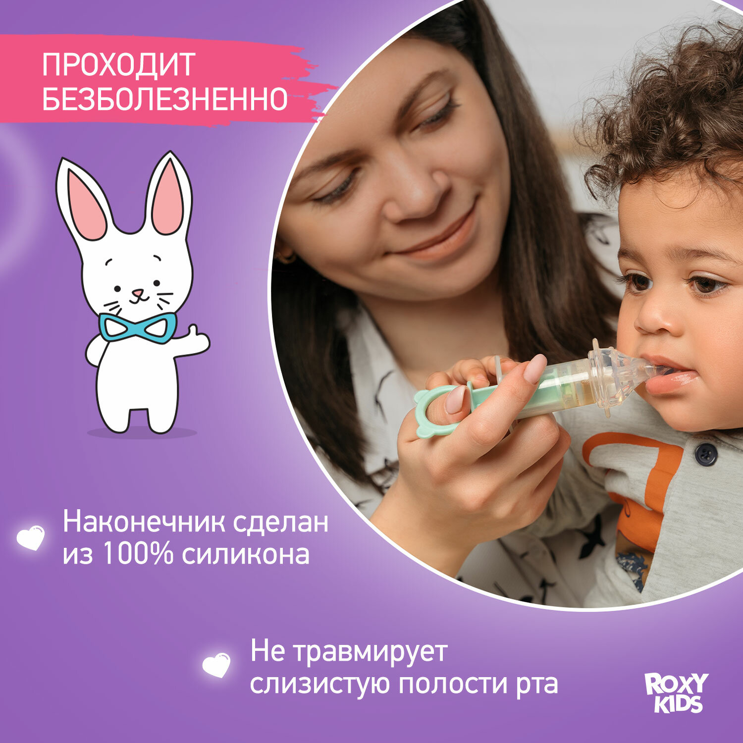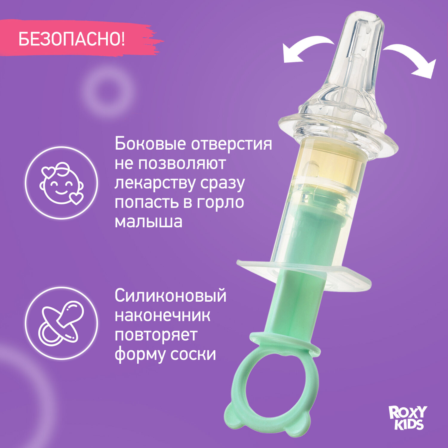 Дозатор для ввода лекарств от ROXY-KIDS, силиконовый наконечник цвет сиреневый
