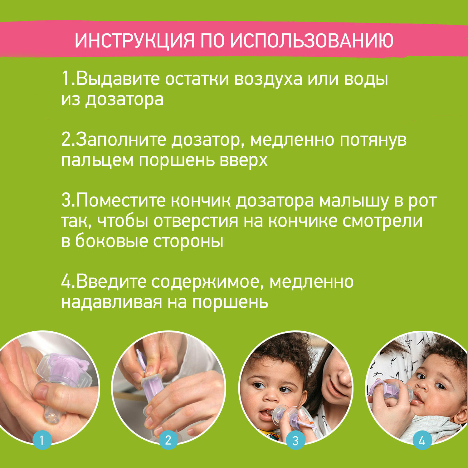 Дозатор для ввода лекарств, силиконовый наконечник цвет мятный