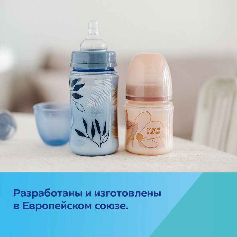Детская антиколикoвая бутылочка Canpol Babies Gold 3 мес+ ,240 мл, голубой