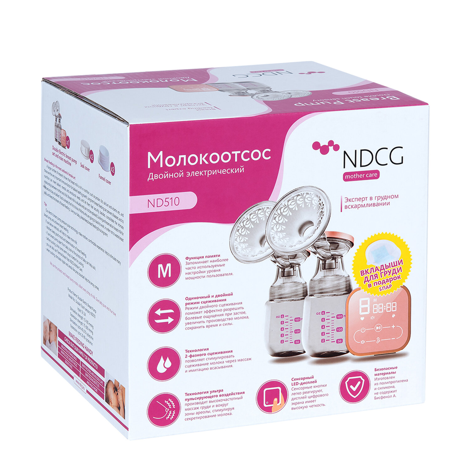 Молокоотсос электрический двойной NDCG Double touch sensory ND510 интересное: