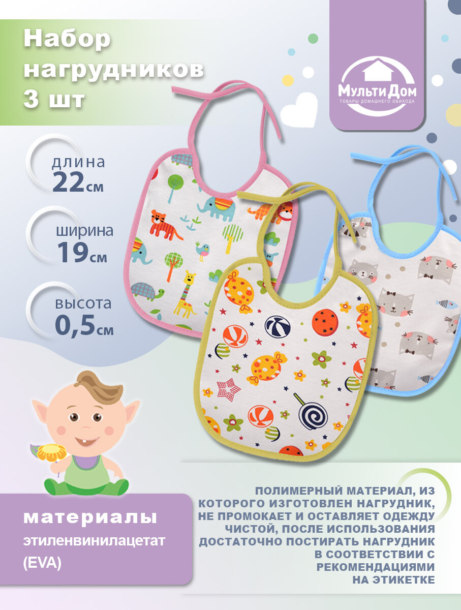 | Дополнительная информация | благодаря полимерному материалу, из которого изготовлен нагрудник, он не промокает и оставляет одежду чистой |