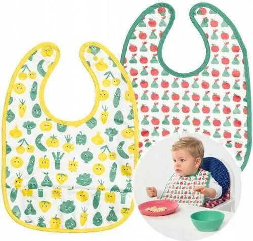 Купить IKEA MATVRA мэтвро Нагрудник, орнамент фрукты/овощи/зеленый желтый. Икеа. 2 шт