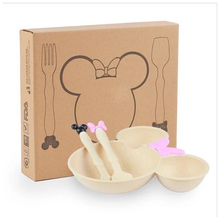 Детская тарелка секционная Микки Маус с ложкой и вилкой для кормления интересное: