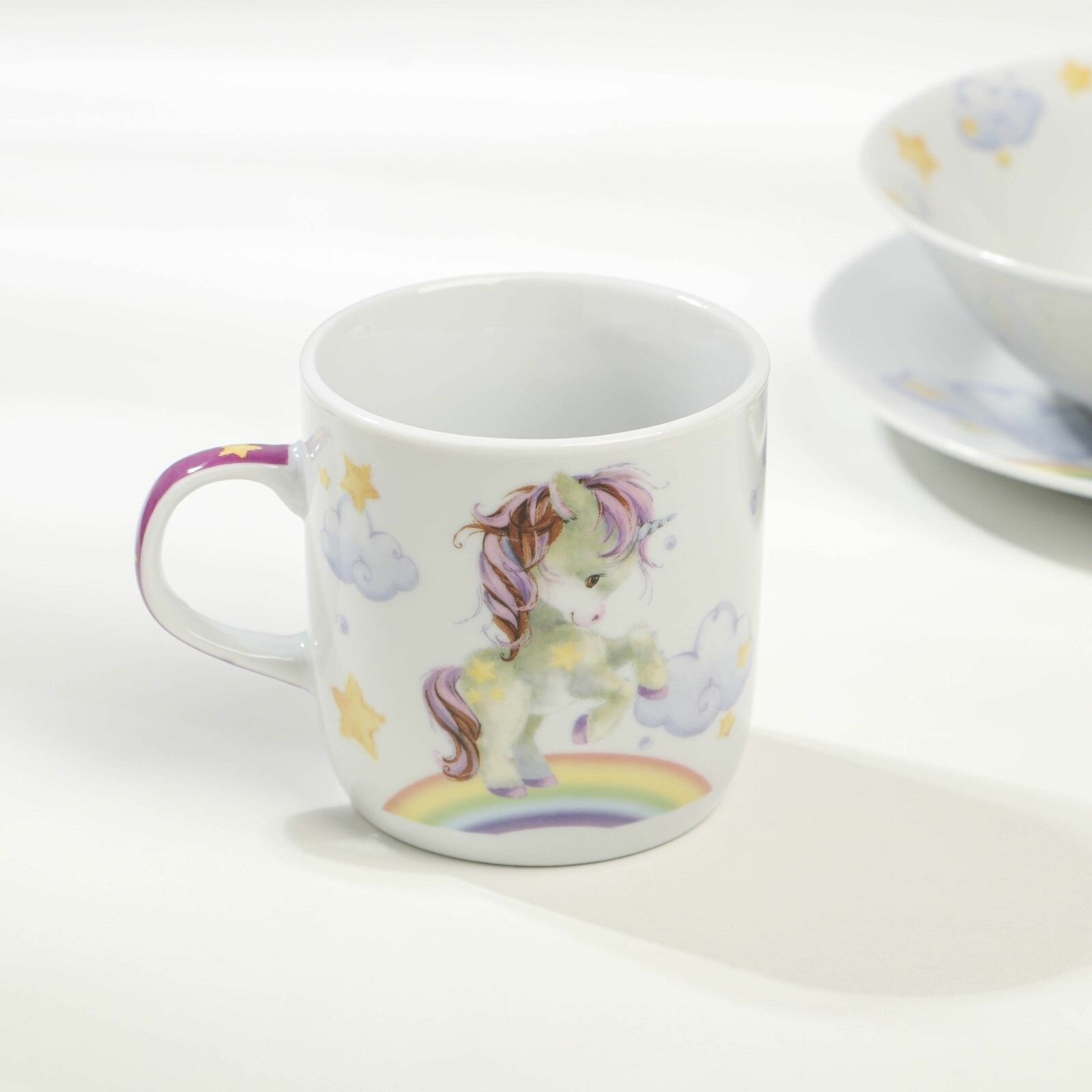 Набор детской посуды из керамики Доляна Единорог, 3 предмета: кружка 230 мл, миска 400 мл, тарелка .