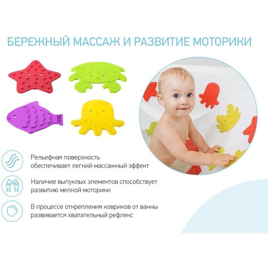 СохранитьМини-коврики антискользящие Roxy-kids RBM-010-4 для ванны SEA ANIMALS яркий 4 шт интересное: