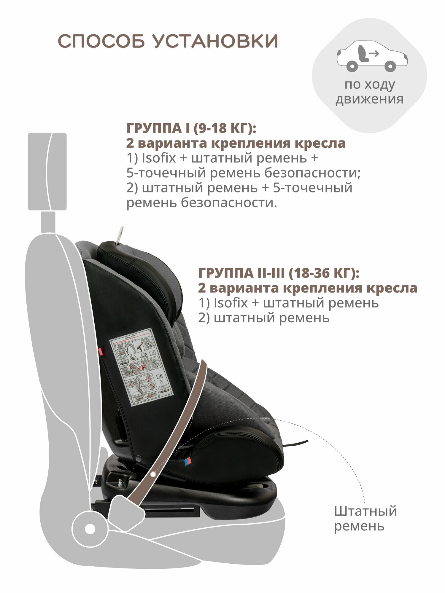 | Установка | спиной или лицом вперед |