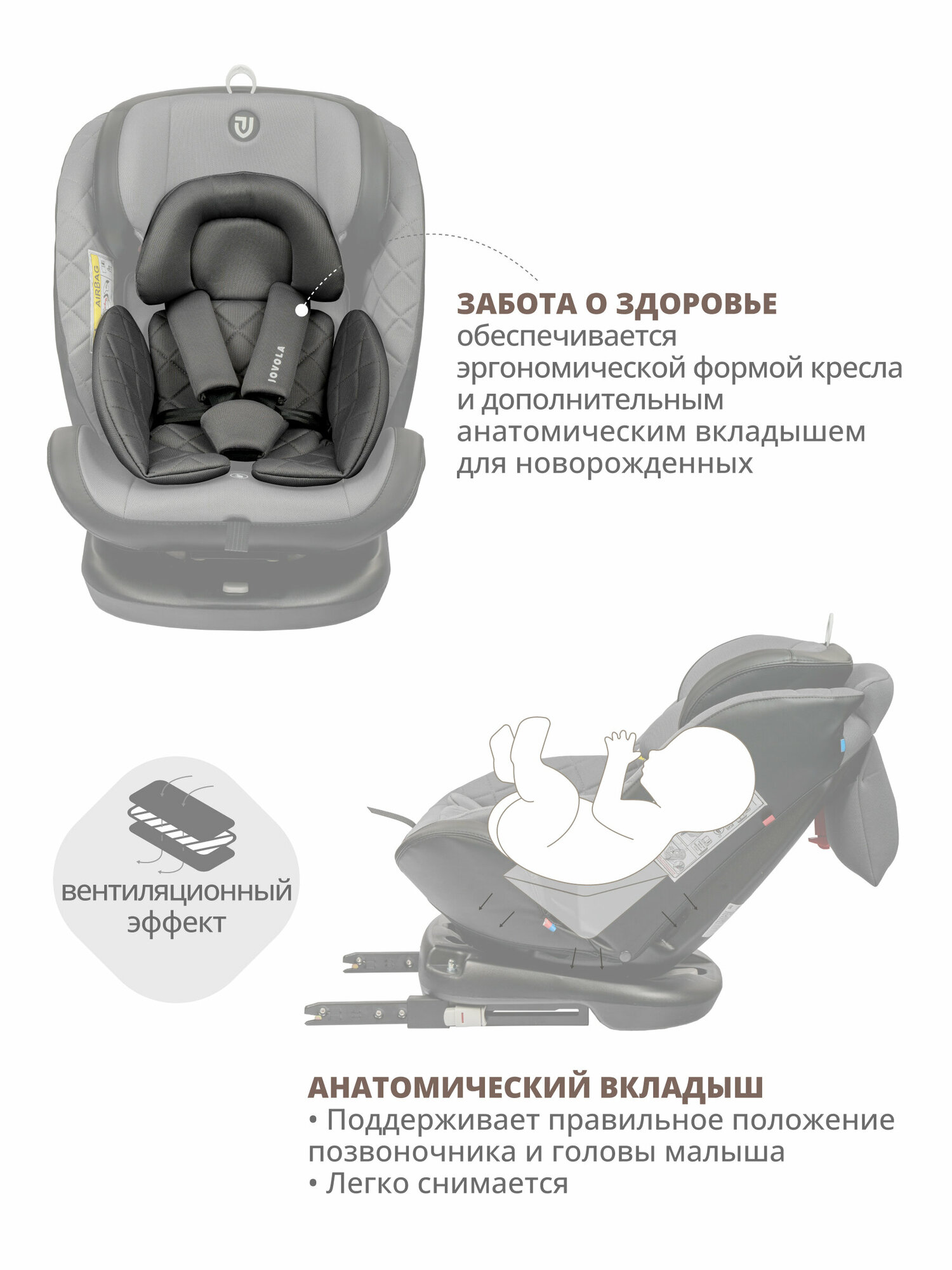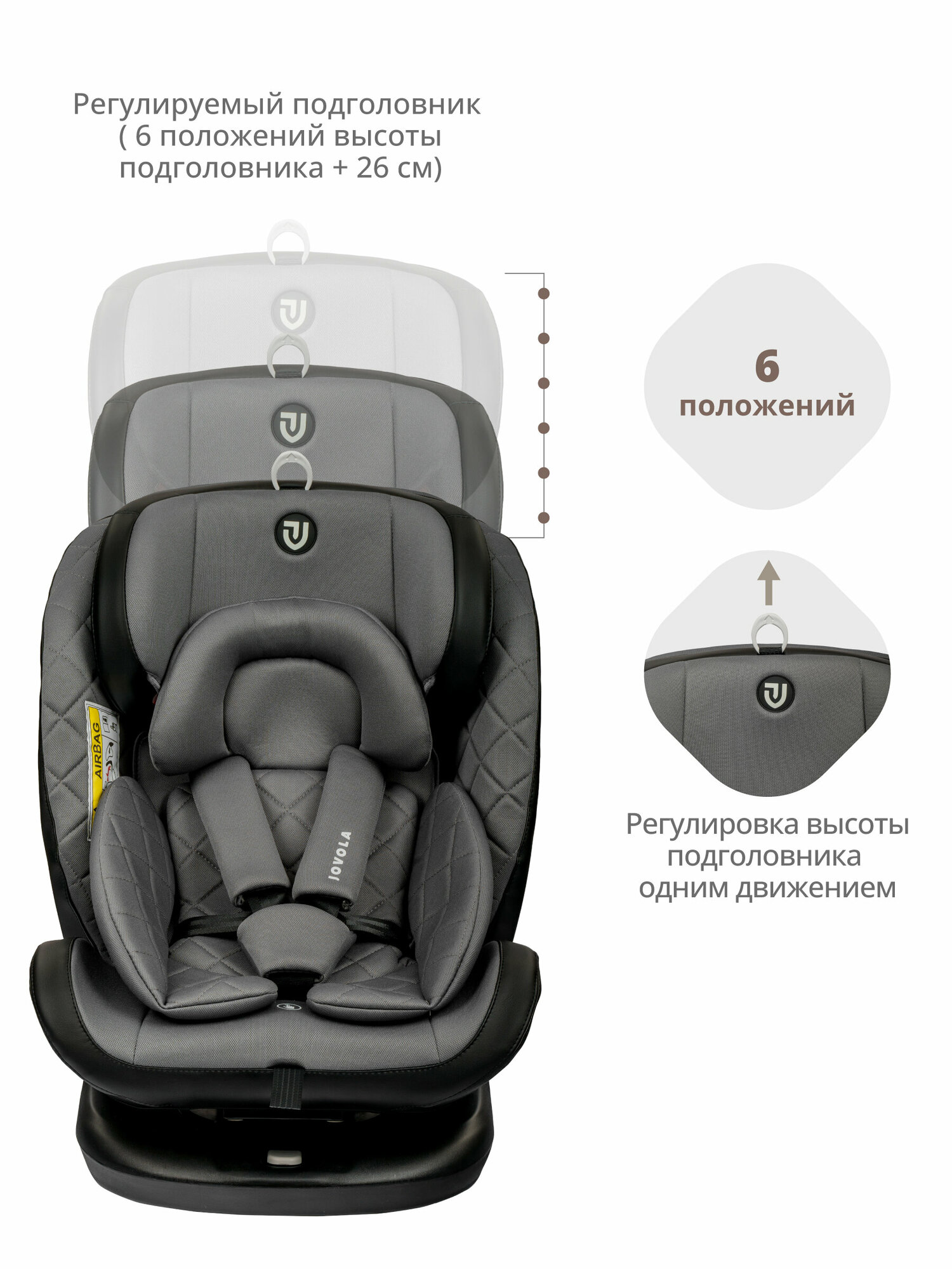 Автокресло Indigo Jovola Fuller Isofix растущее, поворотное 0-36 кг, серый, черный интересное: