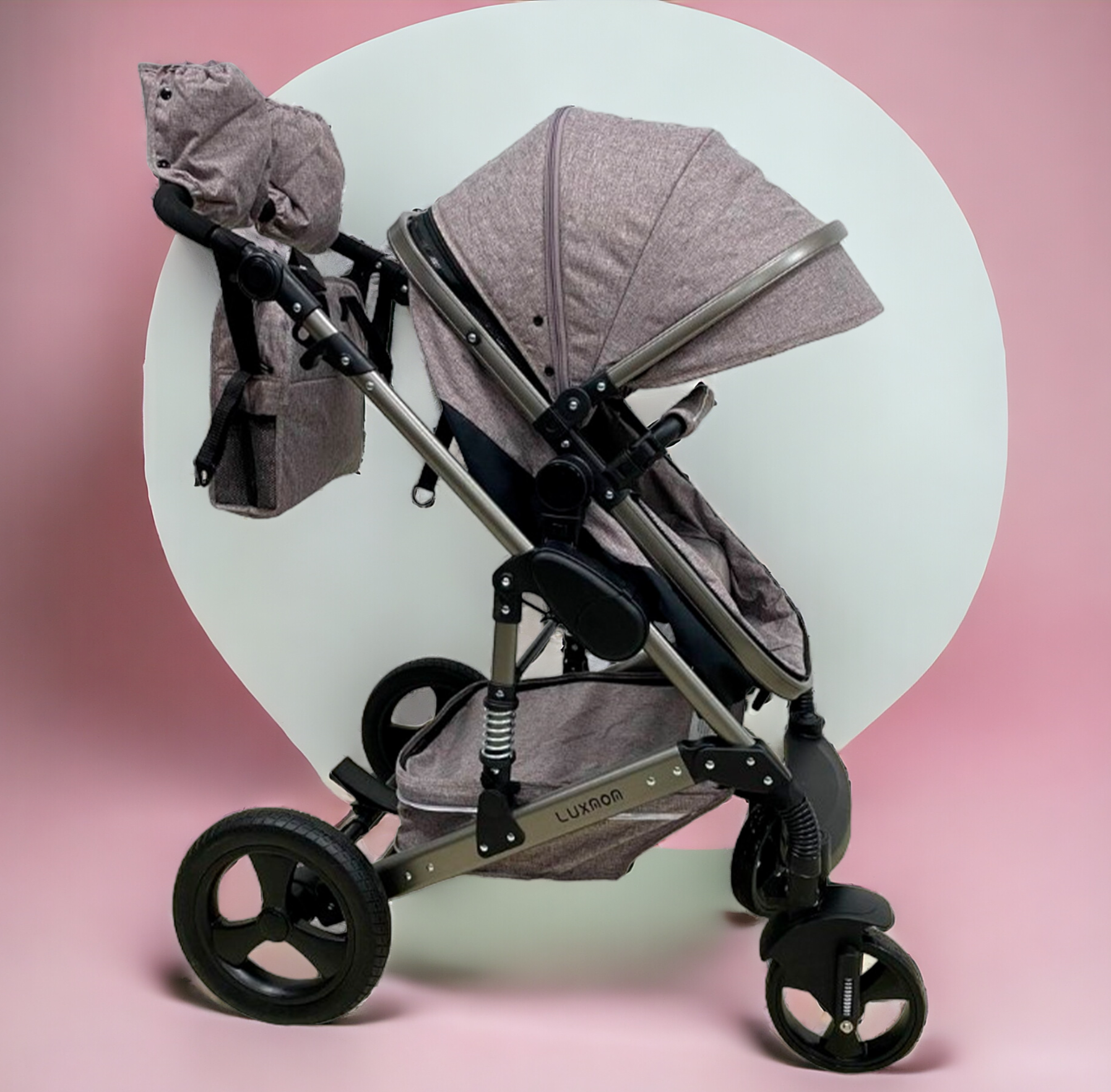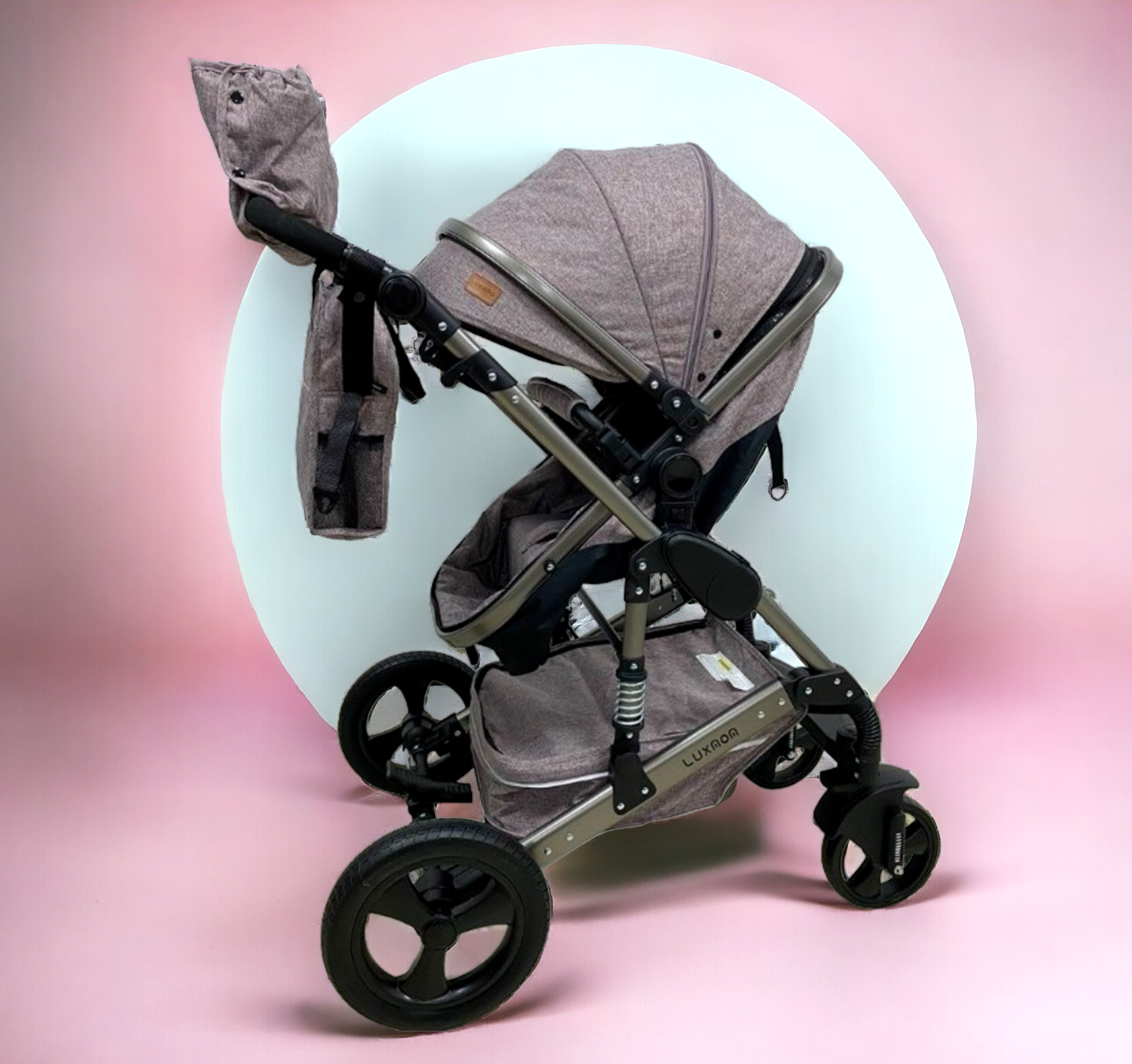 Коляска - трансформер Luxmom 555 (коричневый) 2в1, реверсивный блок, всесезон (сумка+варежки) интересное: