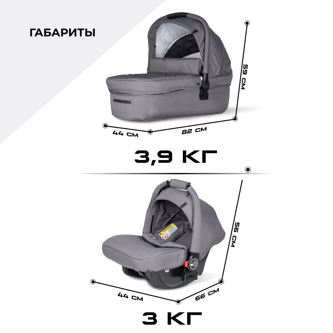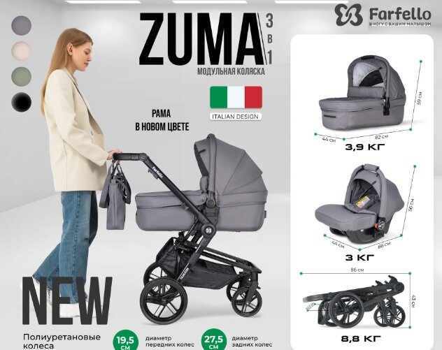 Коляска для новорожденных 3 в 1 Farfello Zuma Trio Comfort, Стальной серый интересное: