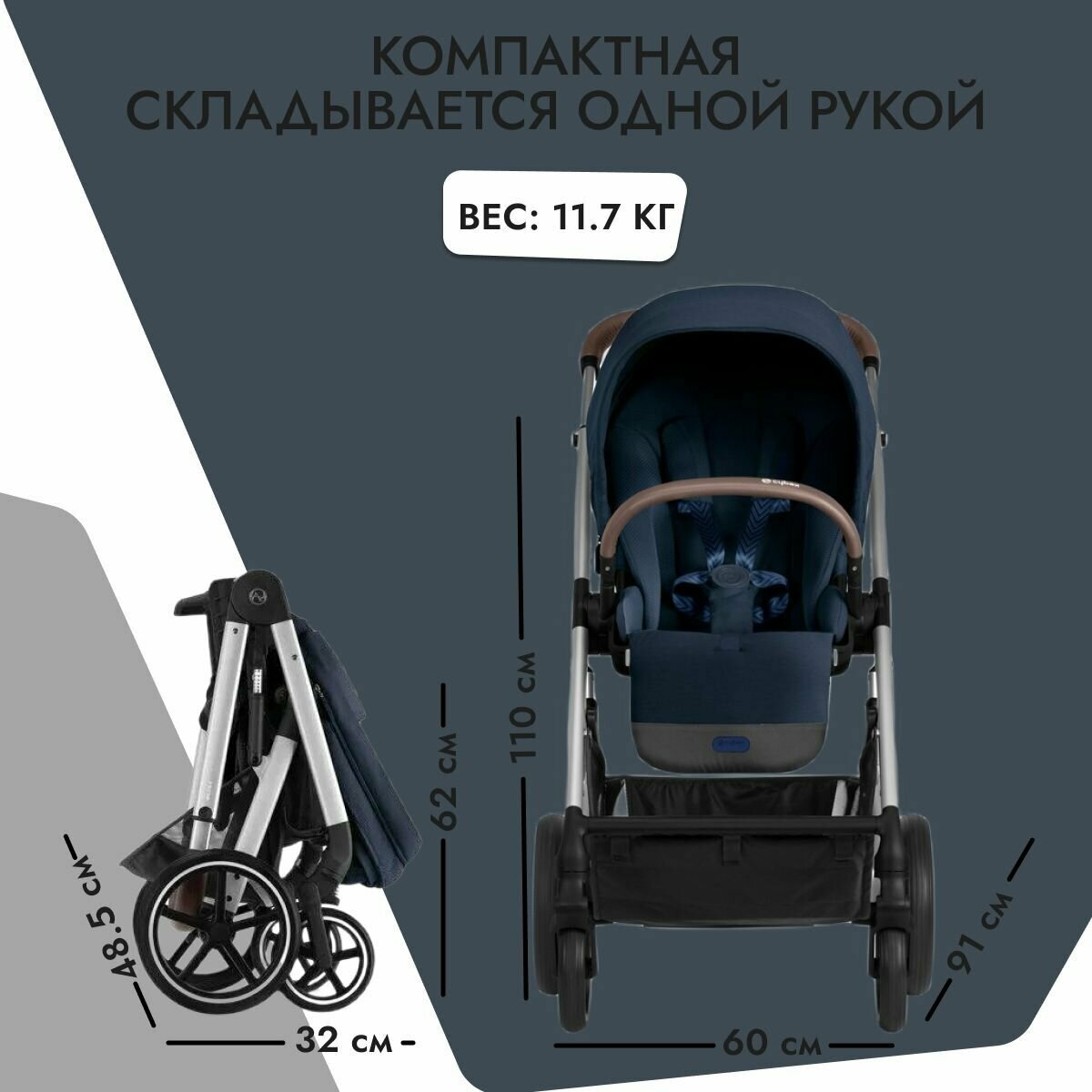 Cybex Balios S LUX NEW 2023 Ocean Blue с дождевиком, новая модель с амортизацией, прогулочная коляска на шасси Silver интересное: