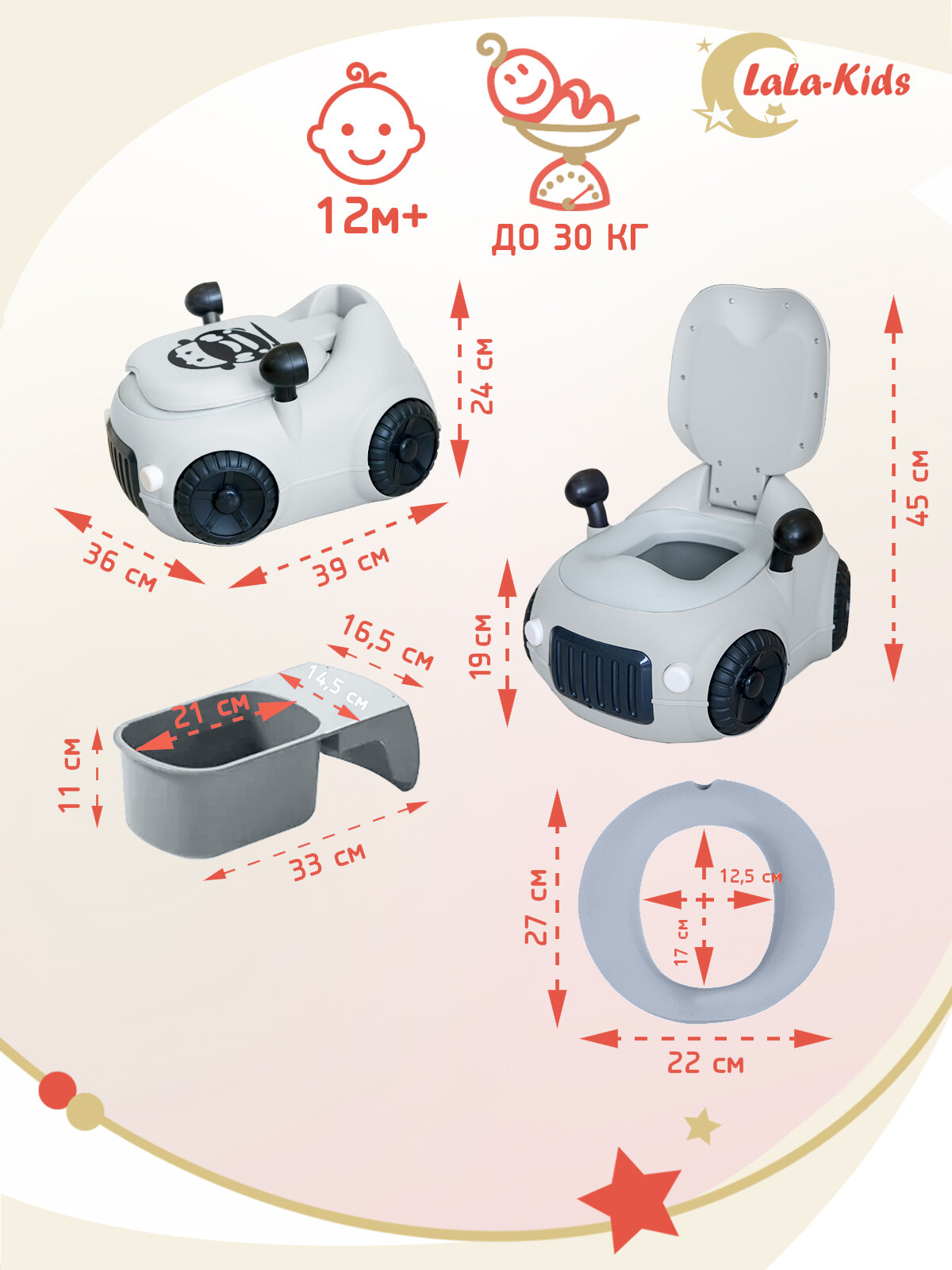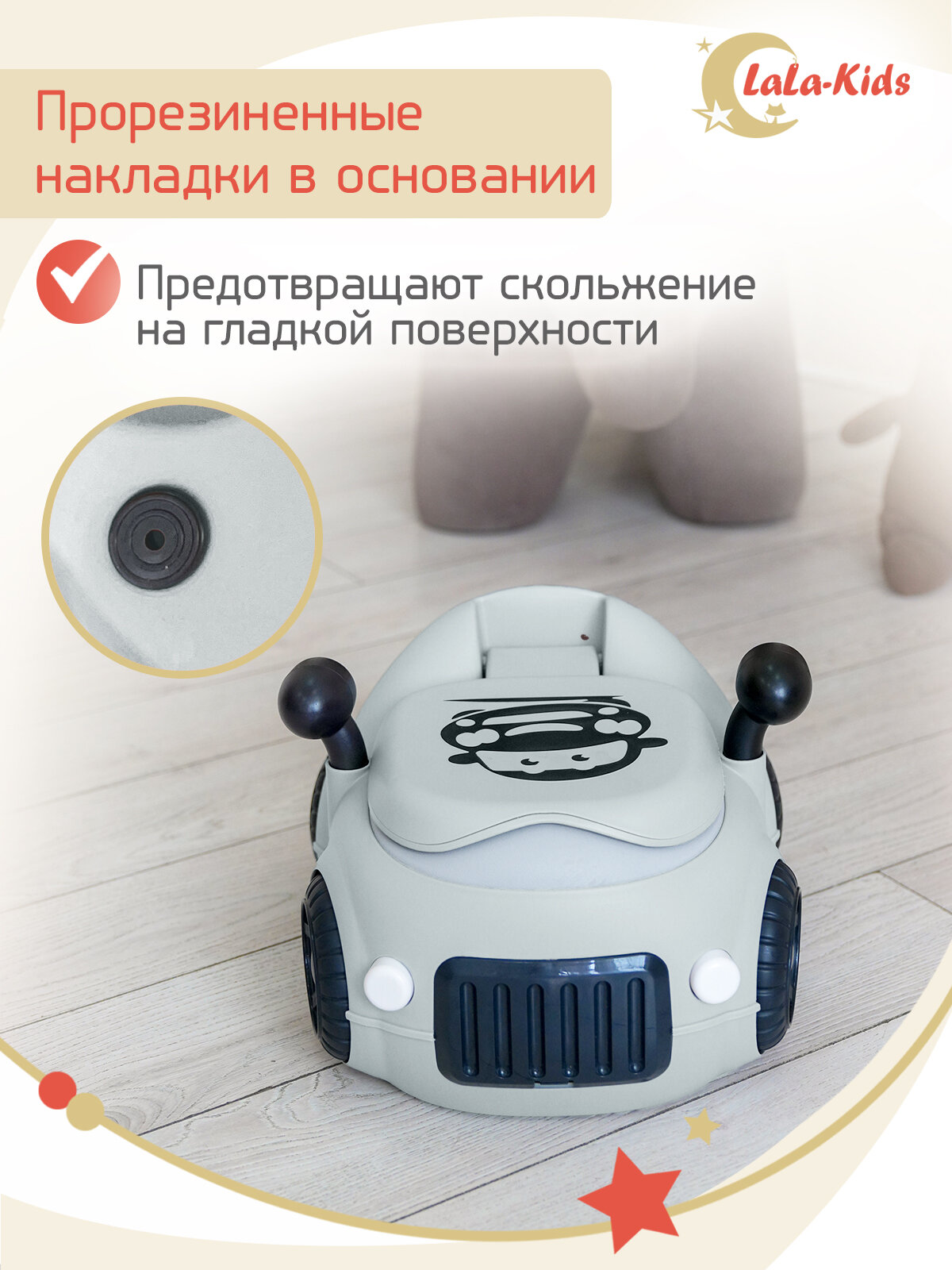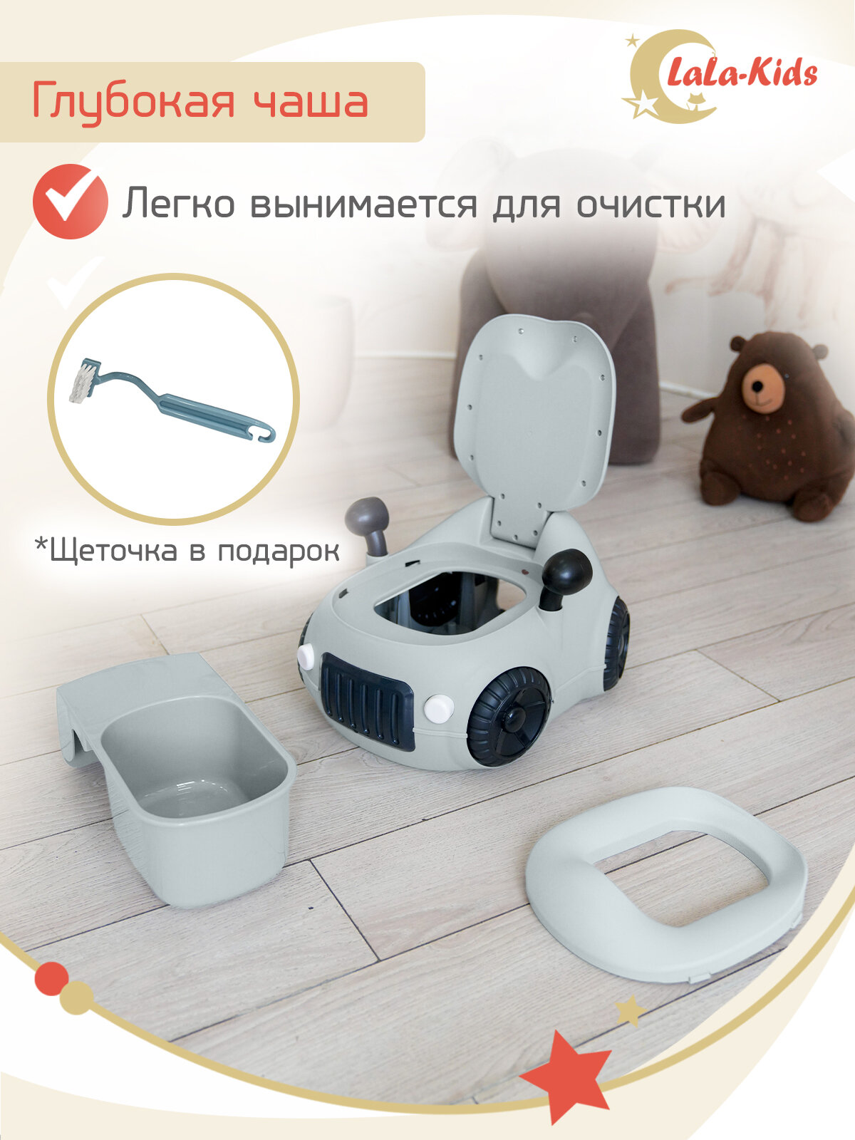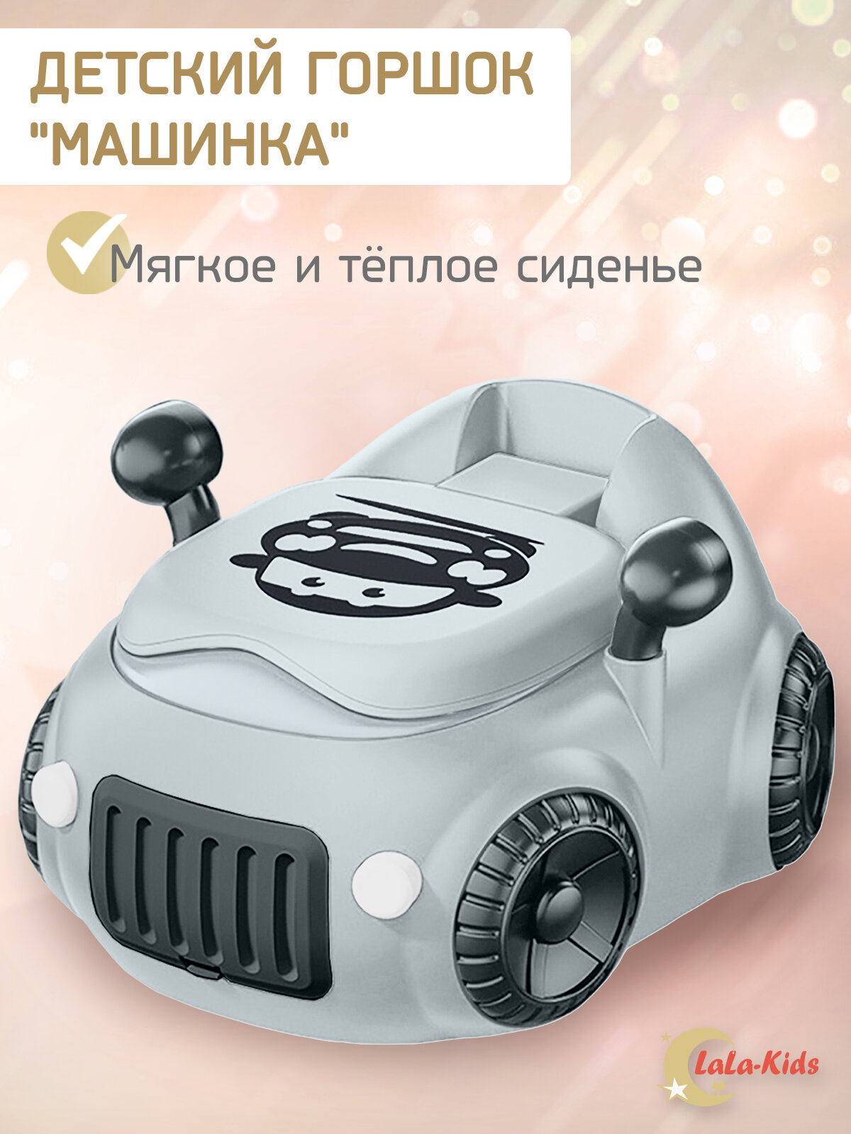 Детский горшок LaLa-Kids с мягким сиденьем и крышкой "Машинка" серая интересное: