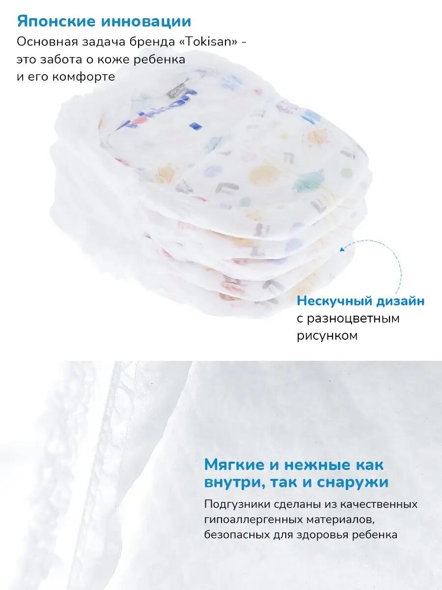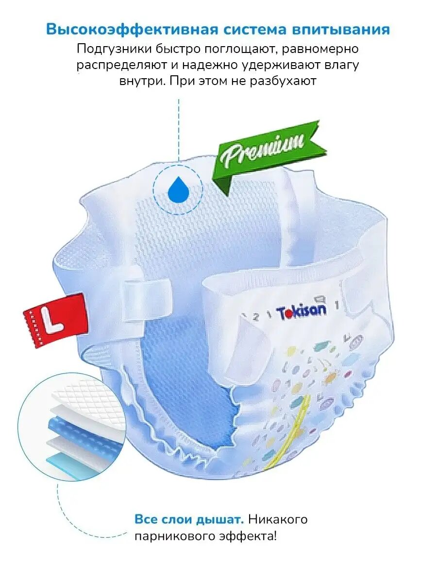 Подгузники детские Tokisan Premium JUNIOR XL для малышей 11-25 кг, 5 размер, 58 шт, дневные (ночные) с индикатором наполнения, одноразовые дышащие для детей, девочек и мальчиков