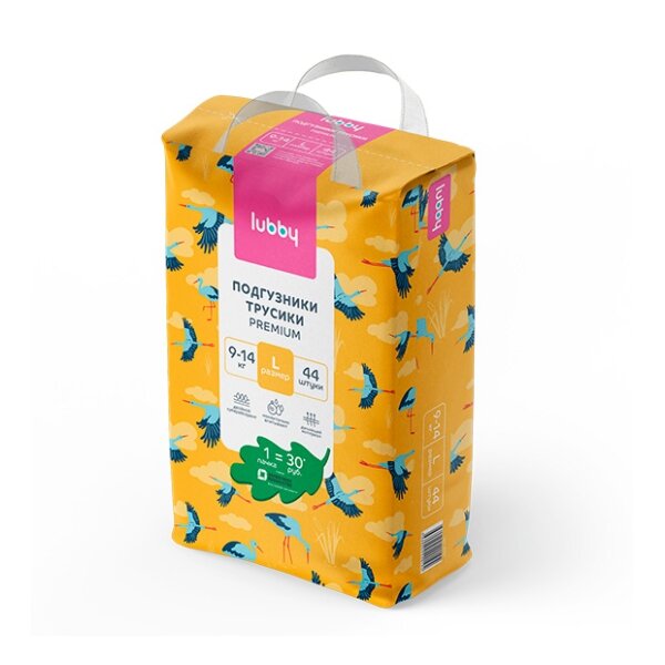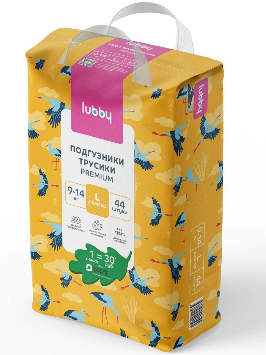 Купить Подгузники-трусики для детей lubby PREMIUM, размер L (9-14 кг) с индикатором влаги, 44 шт в упаковке