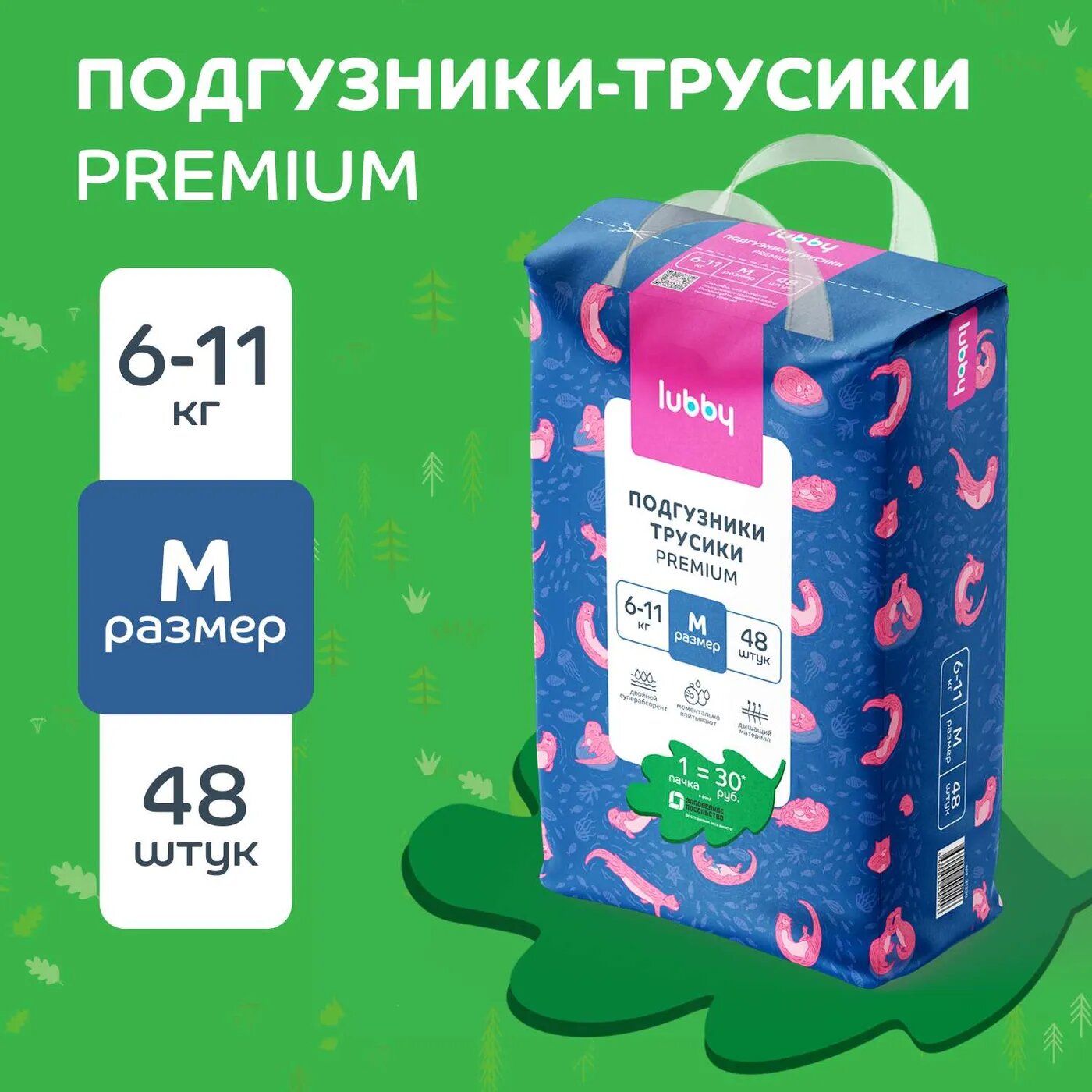 Купить Подгузники-трусики для детей lubby PREMIUM, размер M (6-11 кг) с индикатором влаги, 48 шт в упаковке