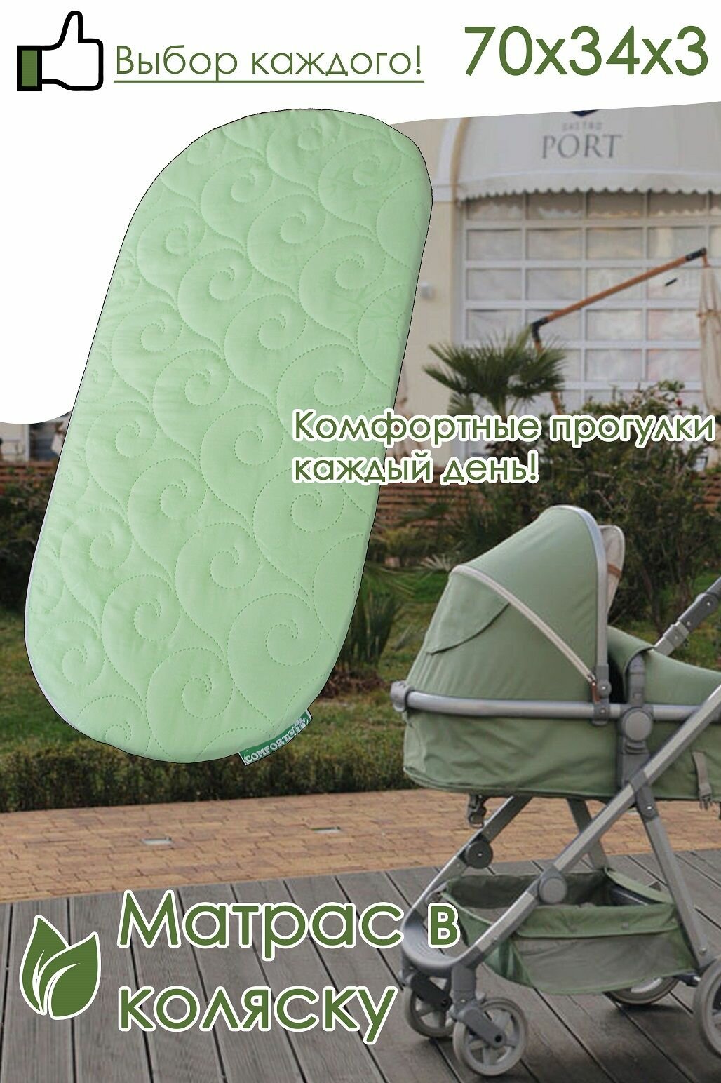 Матрас в коляску Baby 70х34х3 салатовый интересное: