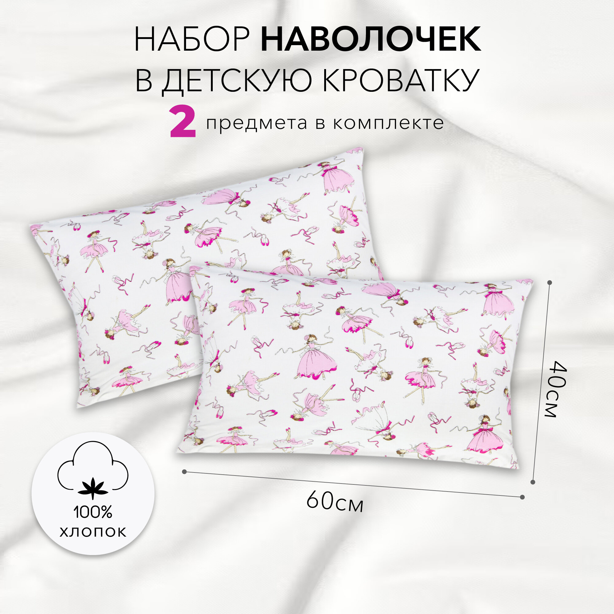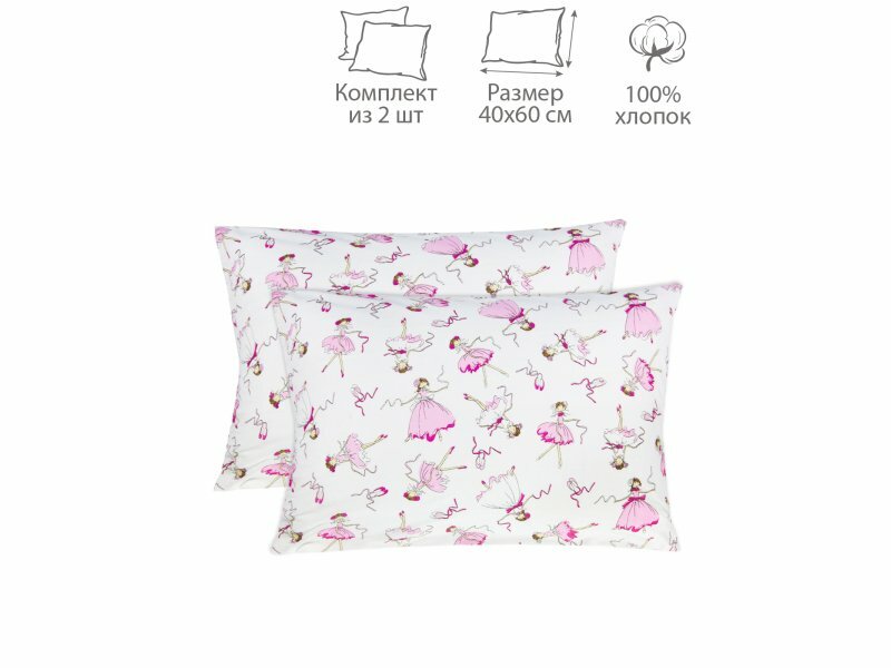 Купить Комплект наволочек AmaroBaby 40х60 поплин (Балерины, белый)-2 шт.