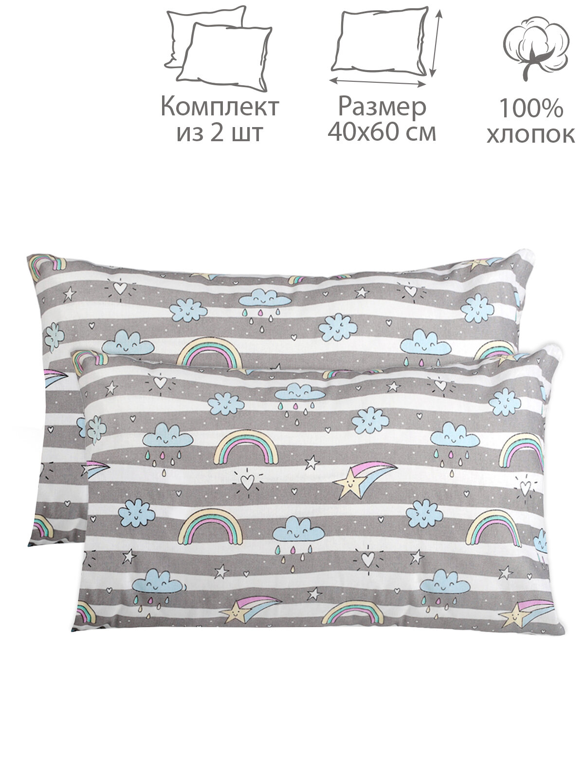 Купить Комплект наволочек AmaroBaby 40х60 бязь (Радуга, серый)-2 шт.
