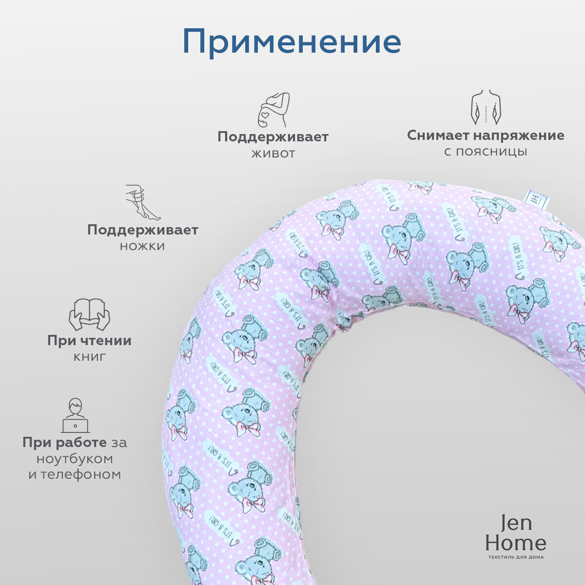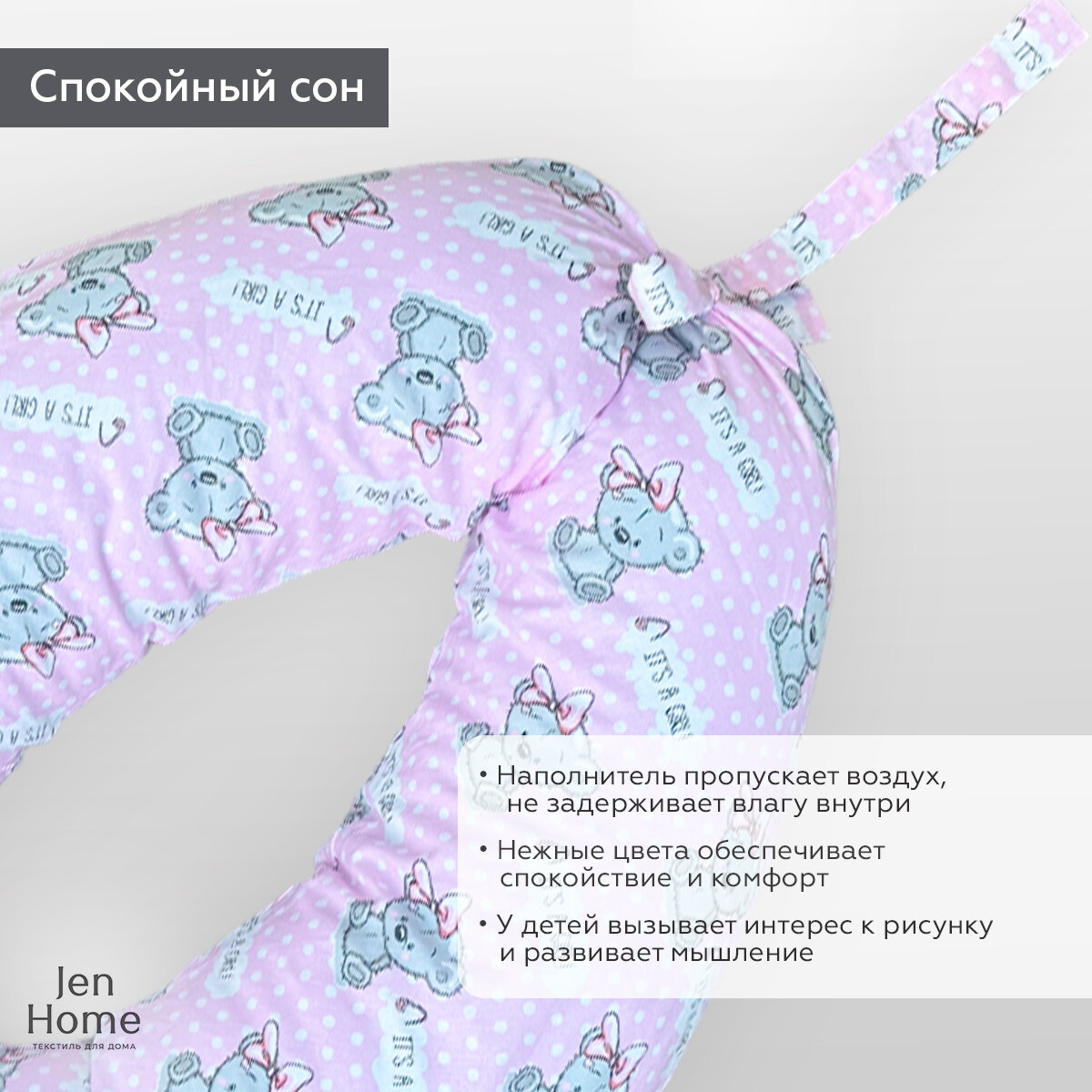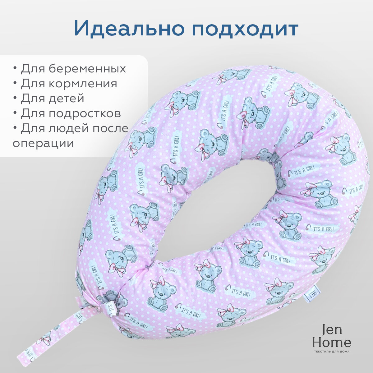 СохранитьПодушка для беременных и кормящих "Бумеранг JenHome" 170х30 см Принт Мишки "It's a girl!" интересное: