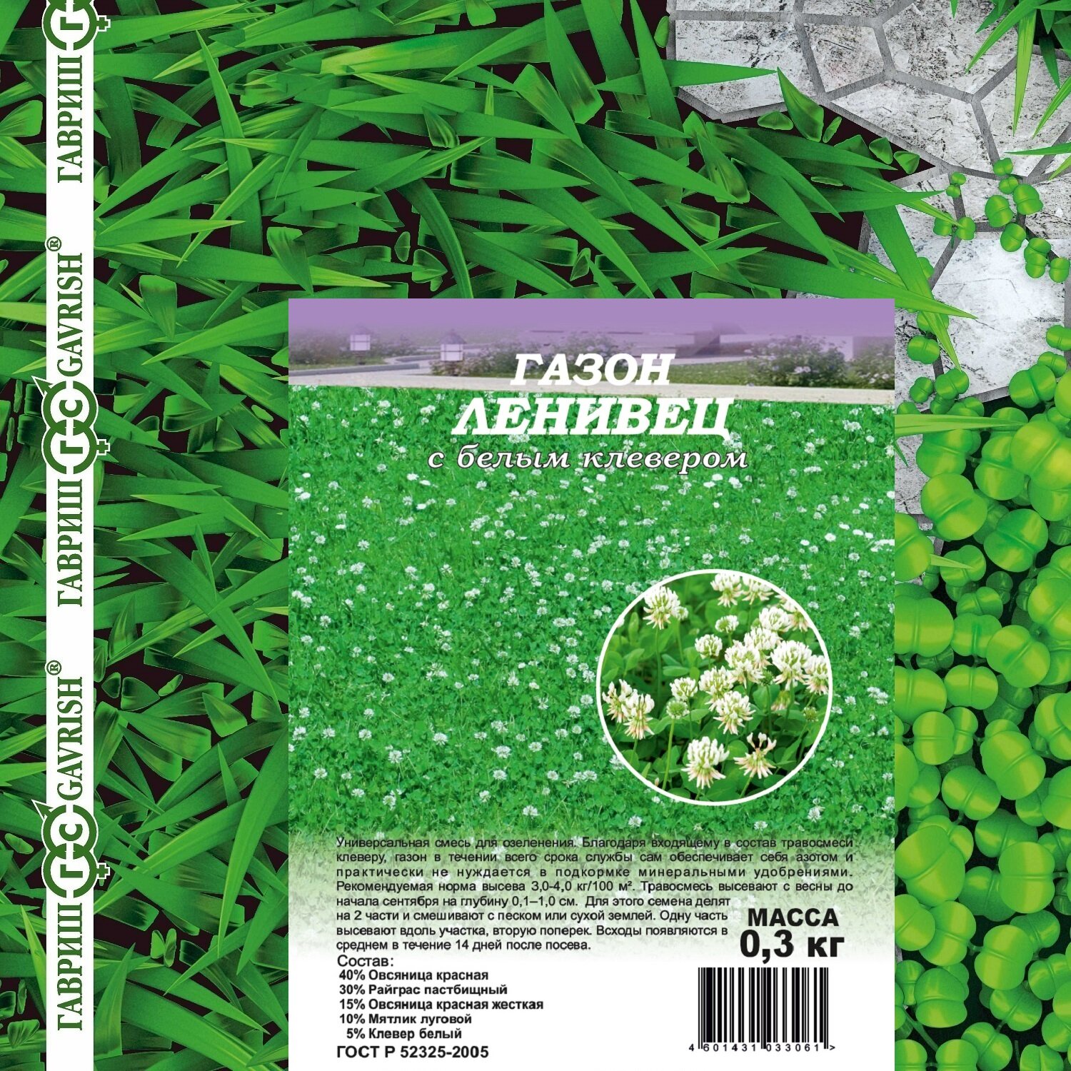 Семена Газон Ленивец с белым клевером, 0,3кг, Гавриш интересное: