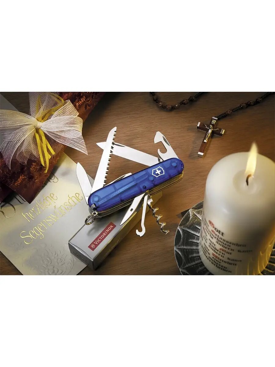 Складной нож Victorinox Huntsman, функций: 15, 91мм, синий полупрозрачный , коробка картонная [1.3713.t2]