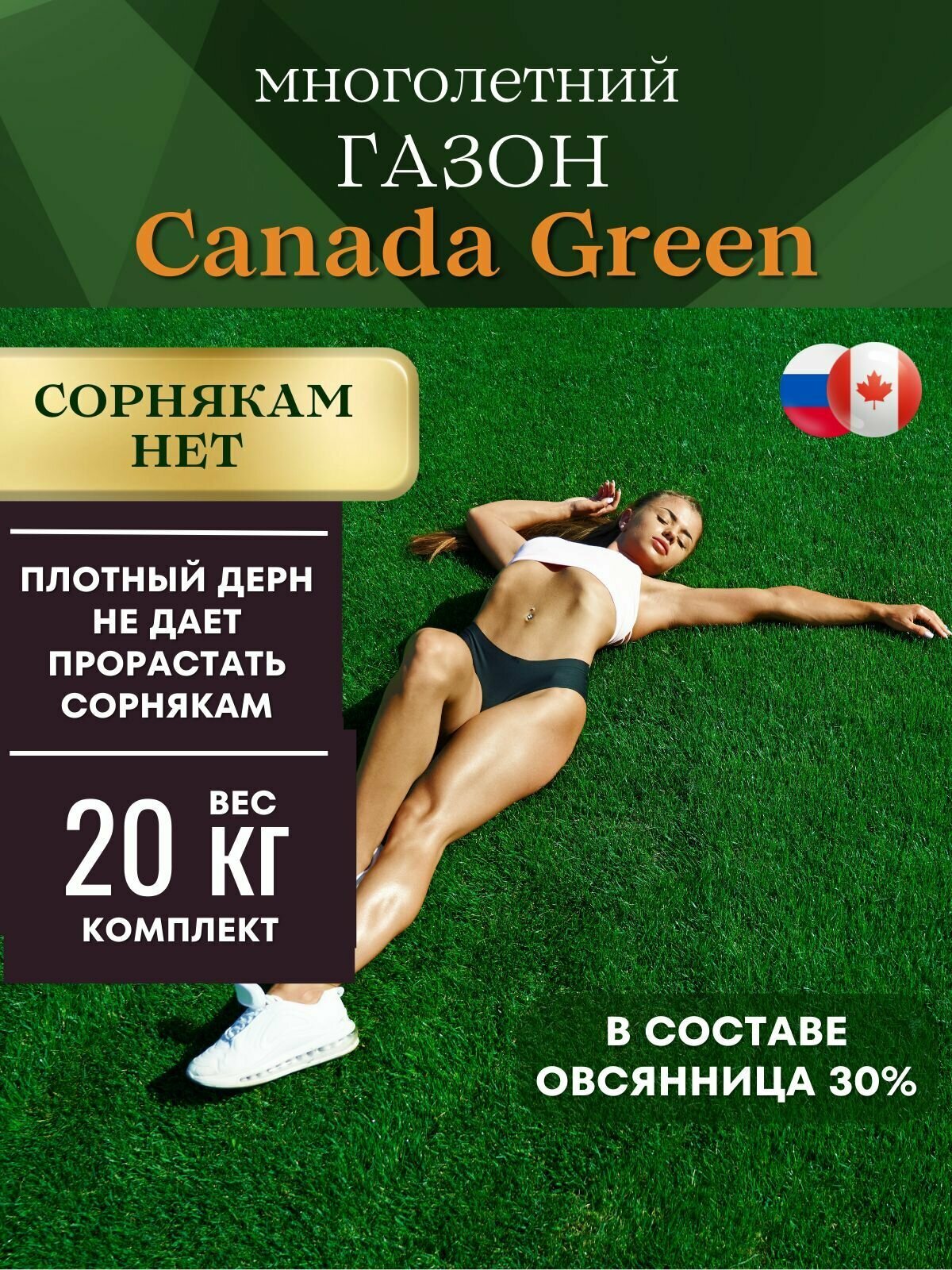 Газонная трава семена вытесняющая сорняки 20 кг.Газон Канада Грин "Killer Weends" интересное: