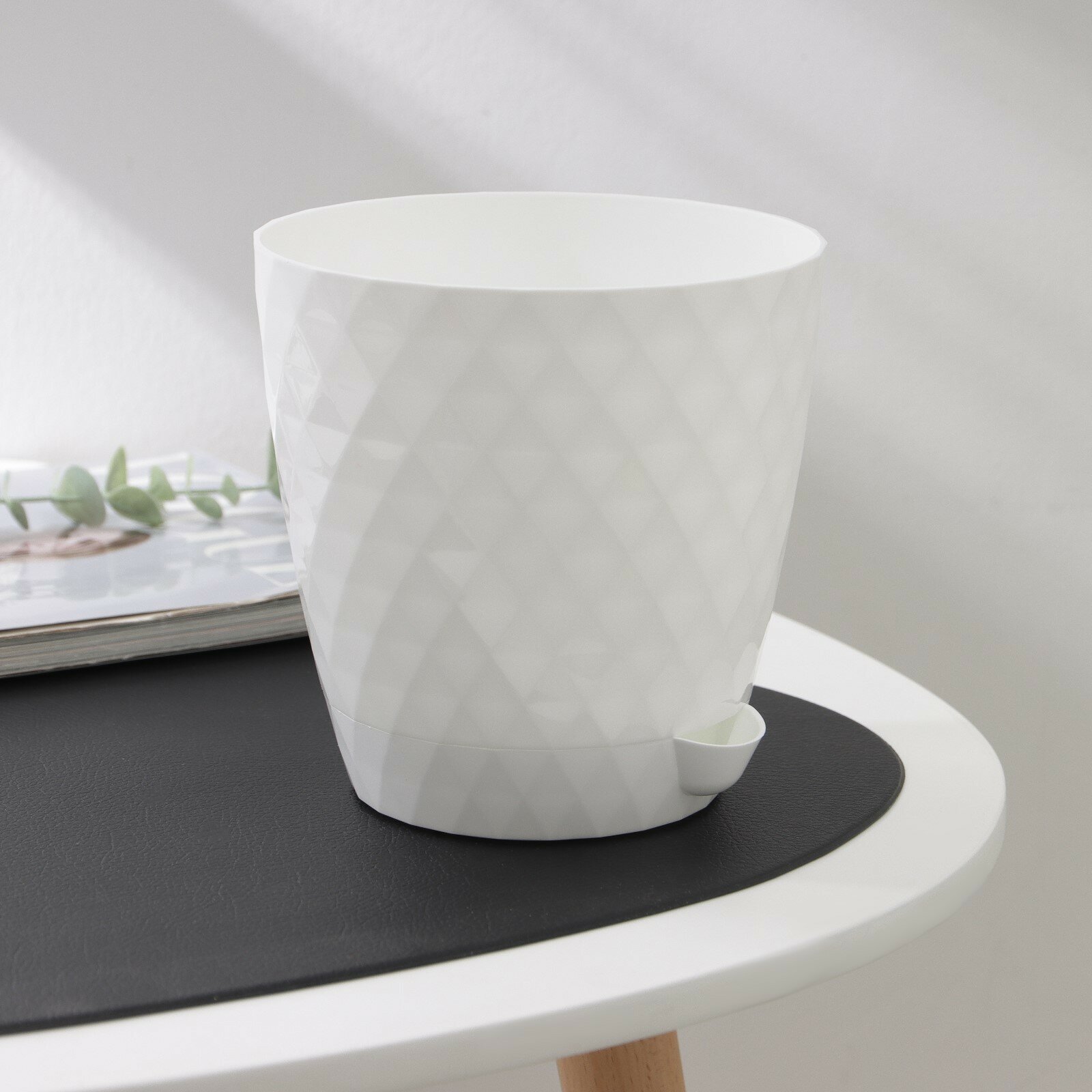 Кашпо для цветов Plast avenue / Пласт Авеню Валенсия со вставкой, пластиковое белое, диаметр 21.5см объем 5.2л