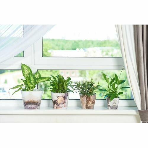 Кашпо квадратное Violet Мрамор, с поддоном, 5 л, светло-серое интересное: