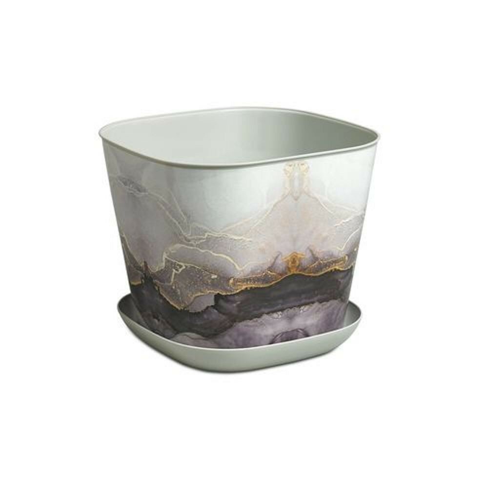 Купить Кашпо квадратное Violet Мрамор, с поддоном, 5 л, светло-серое