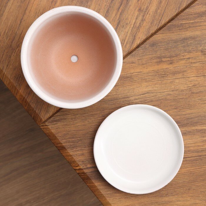 Горшок - бонсайница «Огма» керамический, для кактусов и суккулентов, 3 л, с поддоном, белый