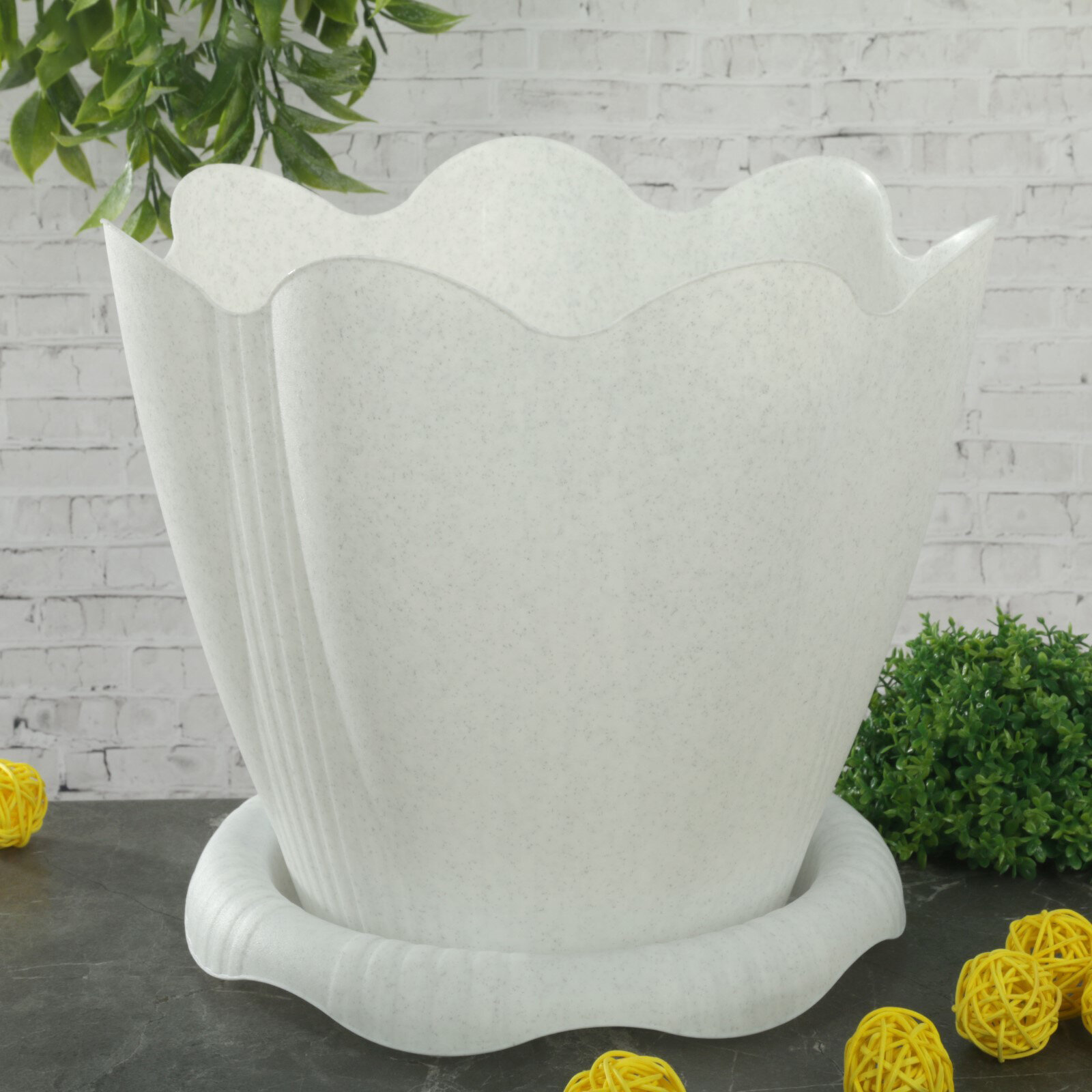 Горшок для цветов пластиковый 5,3л "Эдельвейс" с поддоном мраморный С193М