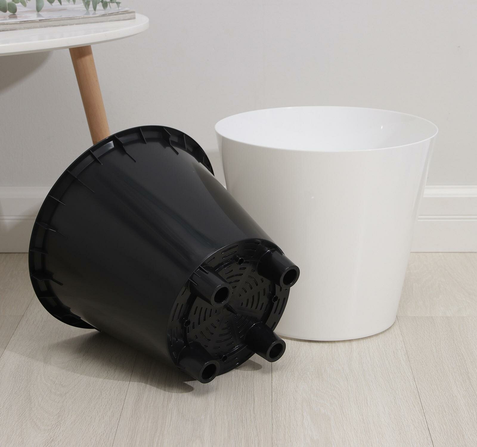 Кашпо Rosemary, с дренажной вставкой, на колесиках, пластик, 16 л, d=33 см, белый
