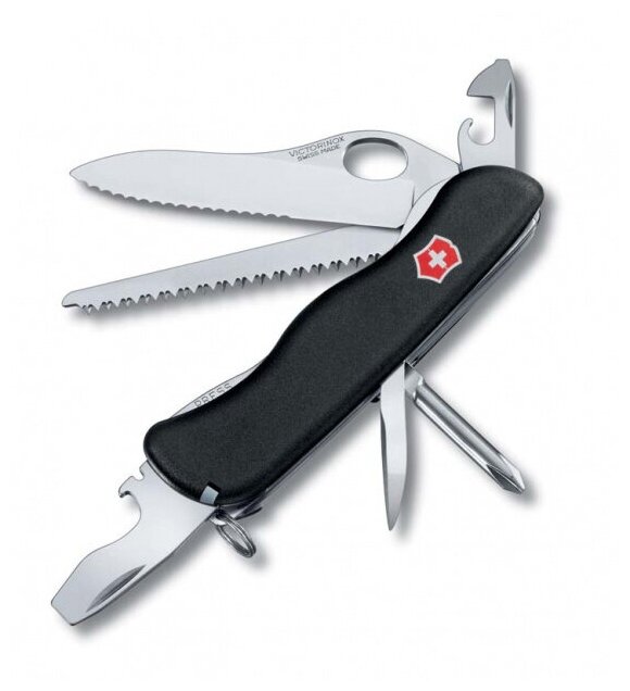 Нож Victorinox Trailmaster One Hand, 111 мм, 12 функций, с фиксатором лезвия, черный