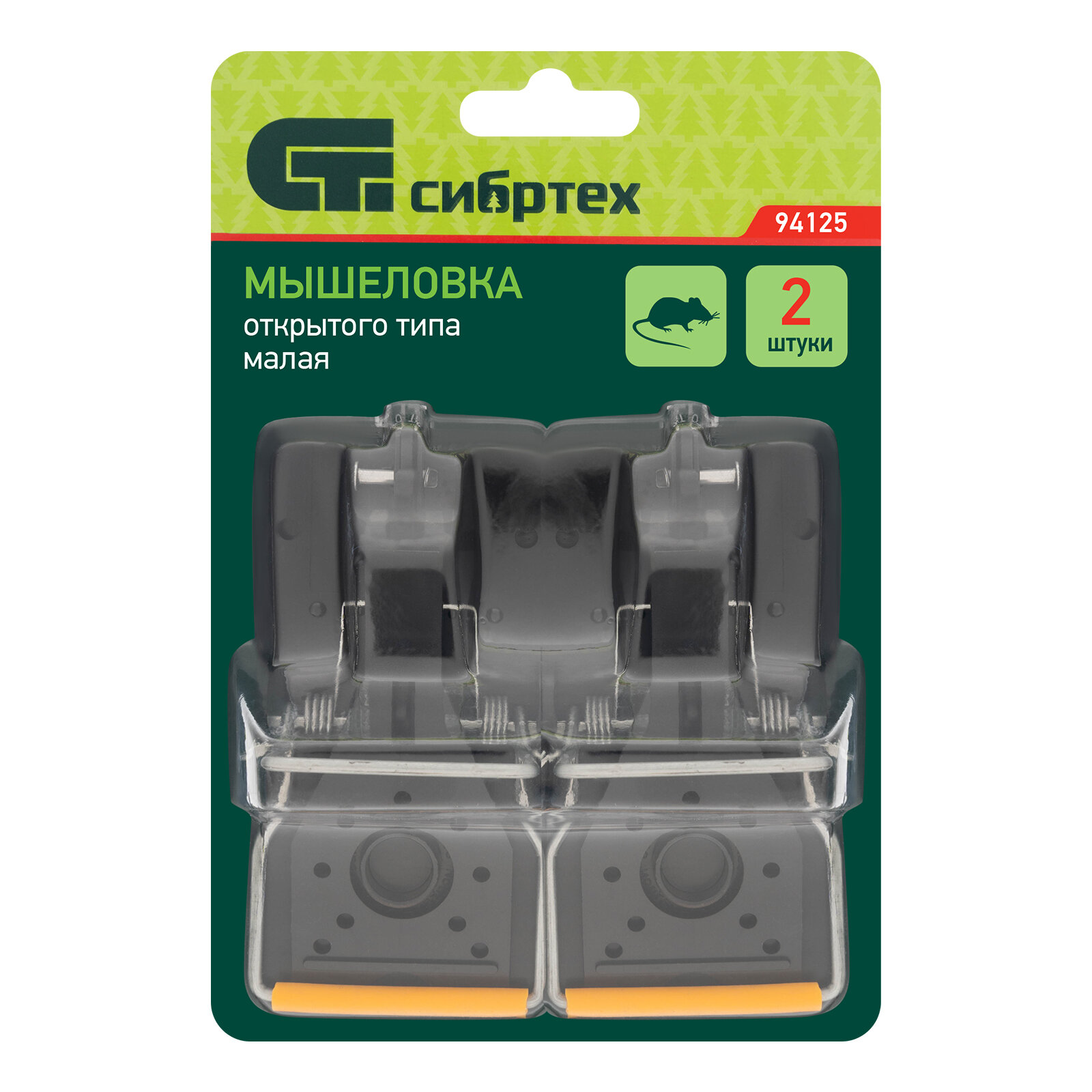 Купить Мышеловка пластиковая открытая Сибртех металлический механизм, малая, 100х45 мм, 2 шт 94125