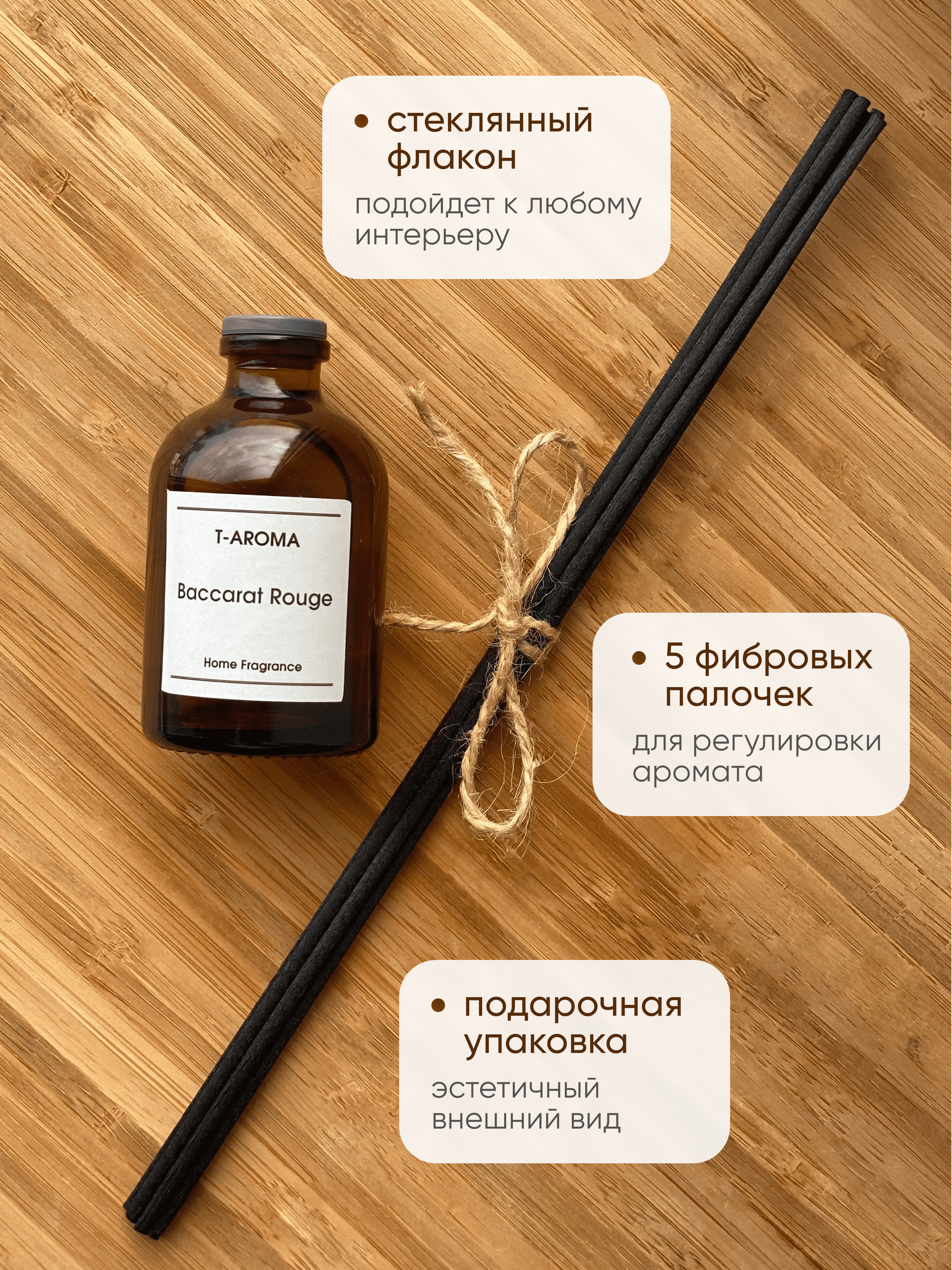 | Подробная комплектация | Стеклянный флакон, фибровые палочки, коробка |