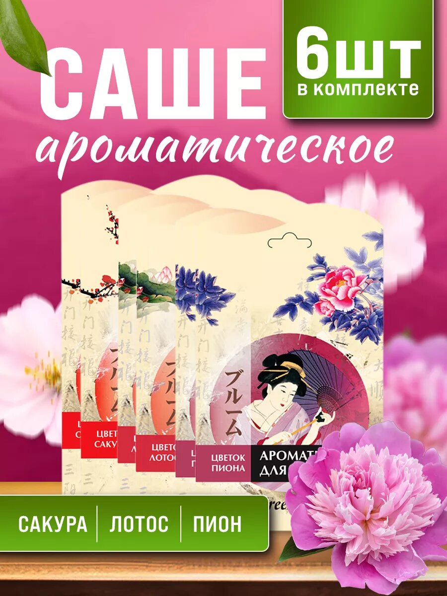Ароматические саше для шкафов и одежды, аромасаше с ароматом лотоса, пиона и сакуры от Greenfield, 6 штук интересное: