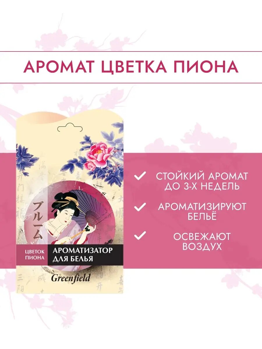 Ароматические саше для одежды и мебели, аромасаше с ароматом пиона от Greenfield, 3 штуки интересное: