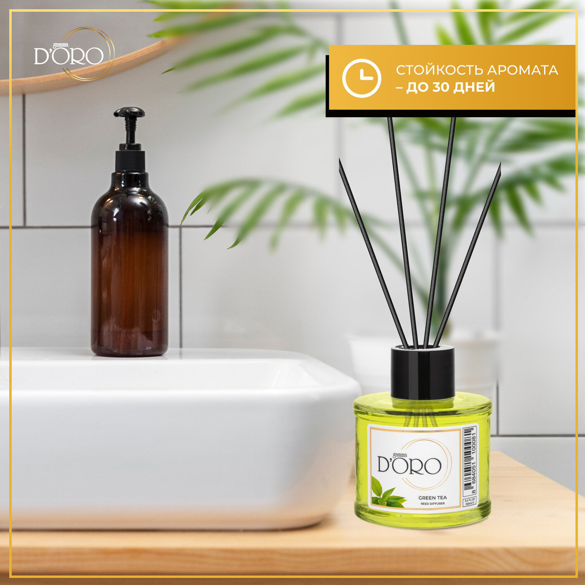 Купить Диффузор для дома Gamma D'Oro Зеленый чай 55 мл, аромадиффузор с палочками, ароматизатор освежитель воздуха
