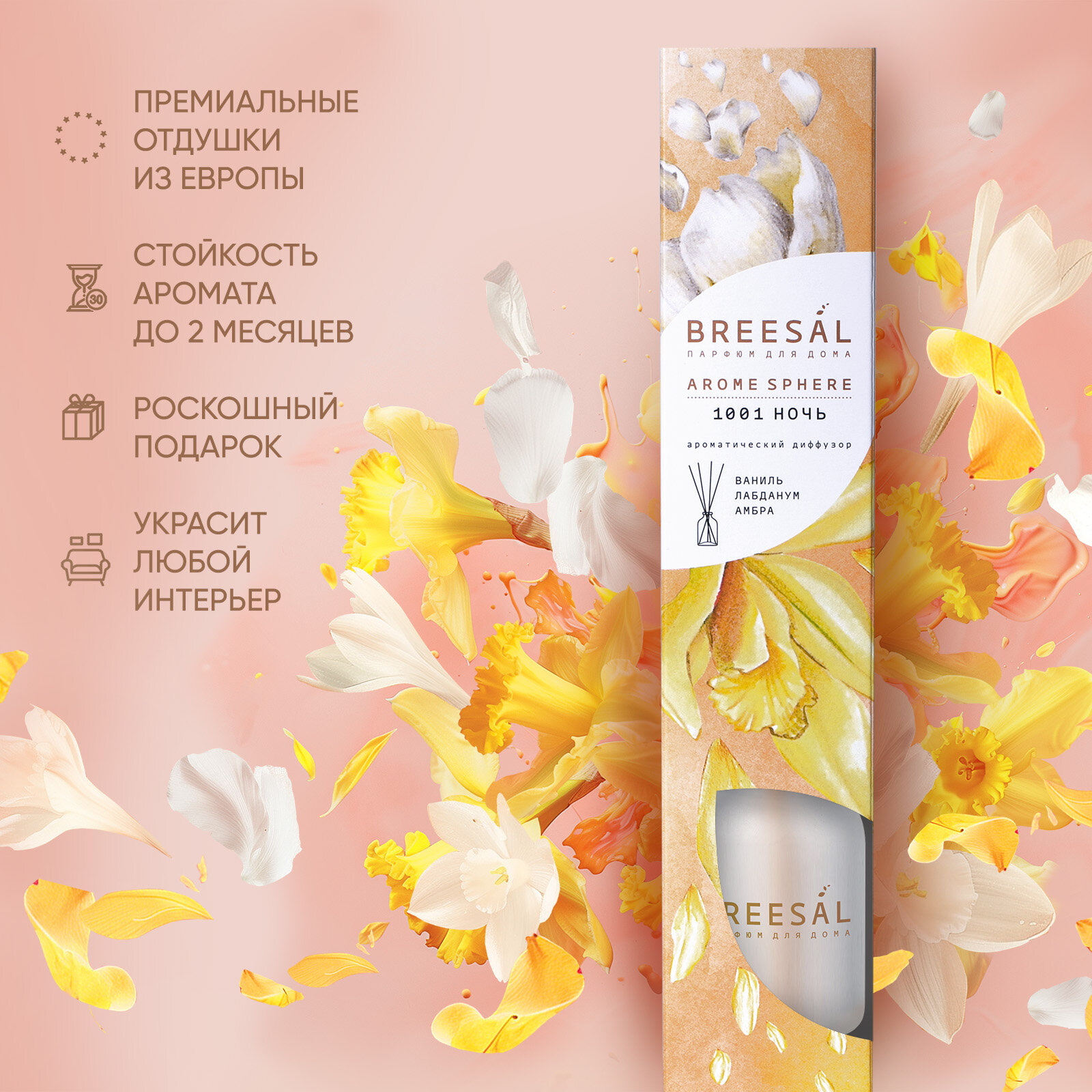Диффузор ароматический с палочками Breesal Aromа Sphere Свежесть чувств, 1001 ночь, 40 мл х 2 шт