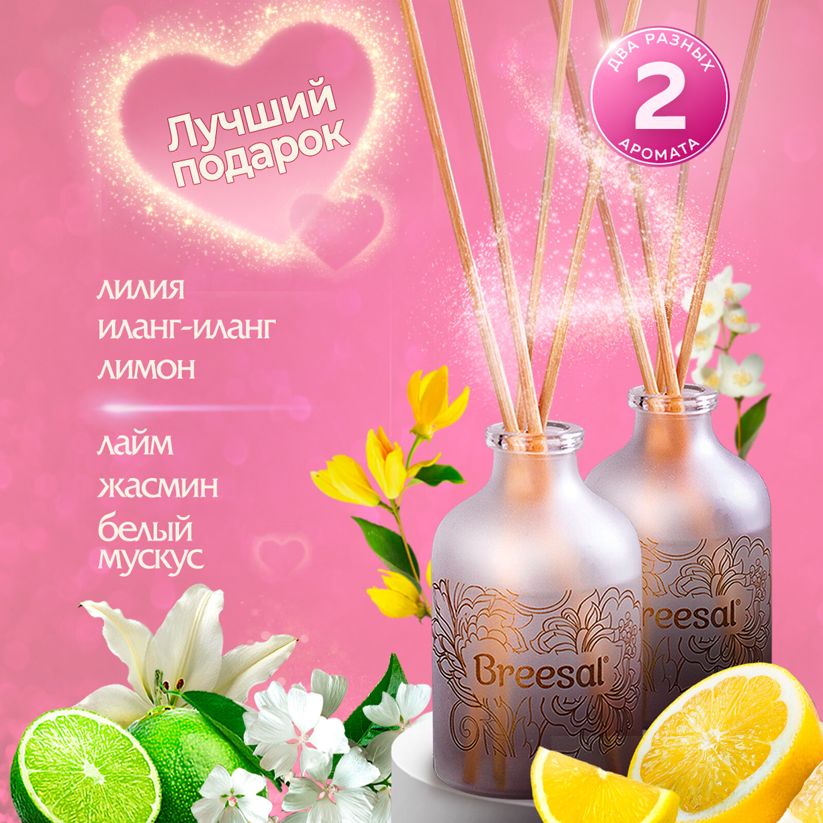 Диффузор ароматический с палочками, Breesal Aromа Sphere Нежный поцелуй, Изысканное наслаждение 40 мл х 2 шт